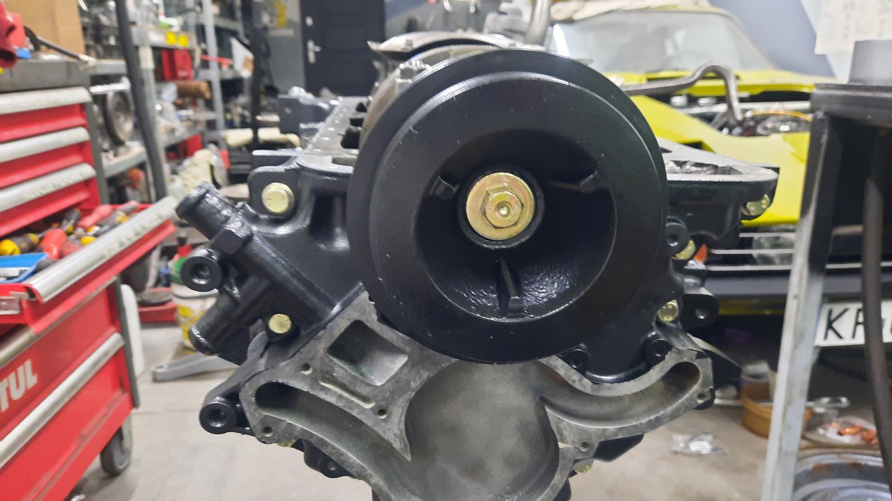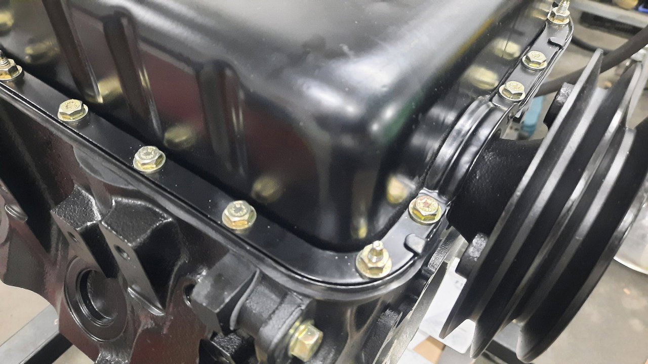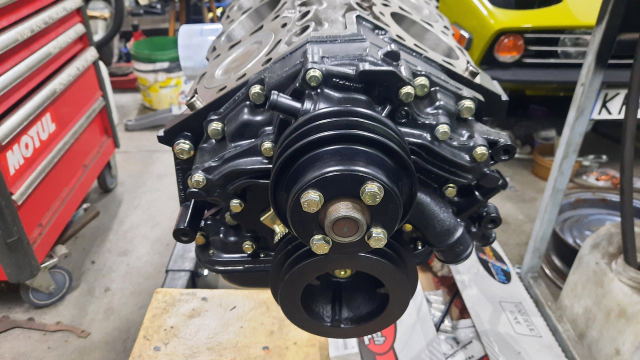 Przykręciłem też korek miski oleju, korki kanałów wodnych (te małe przy tyle silnika), łapy silnika i króciec czujnika ciśnienia oleju.