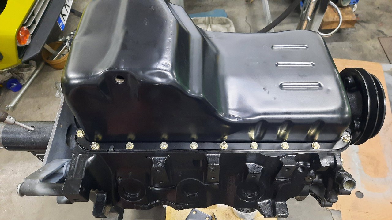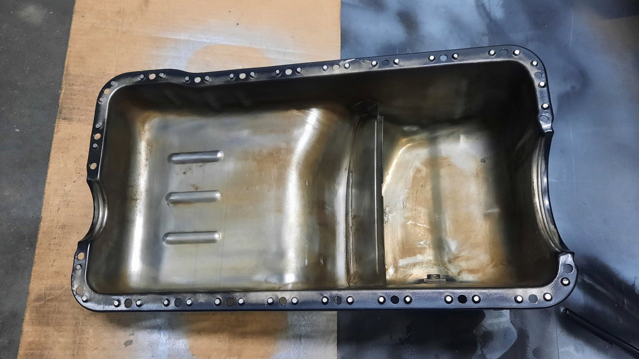 W kolejnym międzyczasie odebrałem graty z malowania proszkowego, między innymi miskę oleju. Udało mi się ją całkiem nieźle zabezpieczyć i było w niej tylko trochę pyłu z piaskowania. Wyczyściłem to dokładnie.