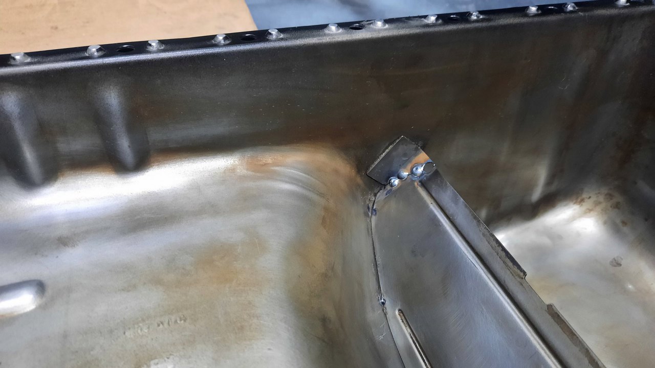 Miska ma jeszcze dodatkowe płaskowniki po obu stronach, równomiernie rozkładające nacisk ze śrubek na uszczelkę. Udało mi się zagiąć te wypustki miski trzymające płaskowniki bez uszkadzania lakieru proszkowego.