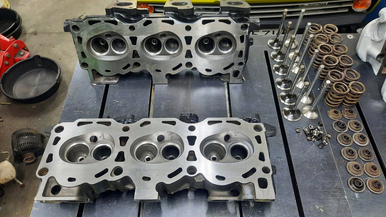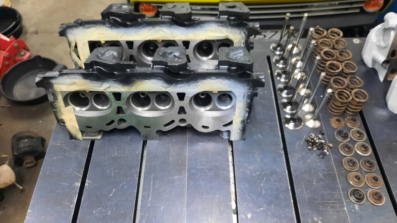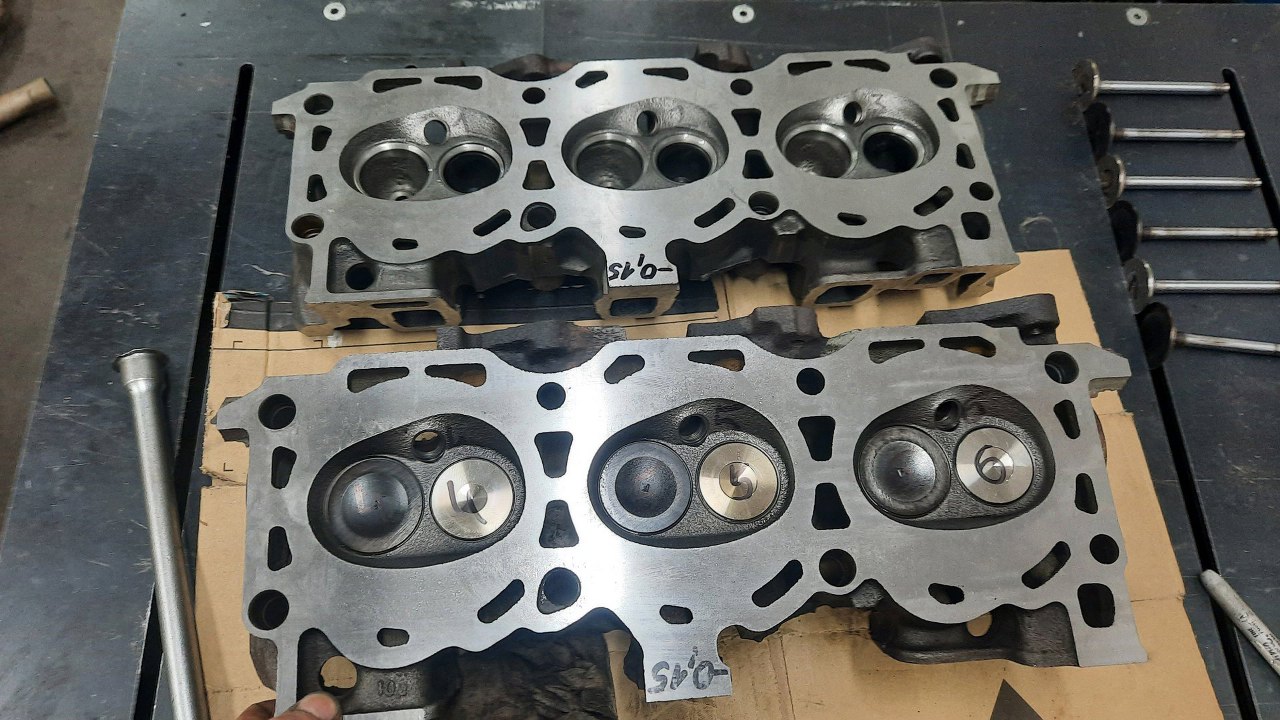 Dość szybko poszło. Ponumerowałem sobie i zawory i komory spalania, żeby trafić z zaworami w to samo miejsce. Nie powinno mieć to żadnego znaczenia w głowicach po obróbce, ale lepiej nie próbować :).