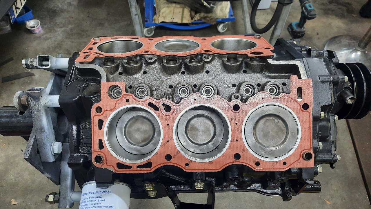 Położyłem uszczelki głowic na blok.