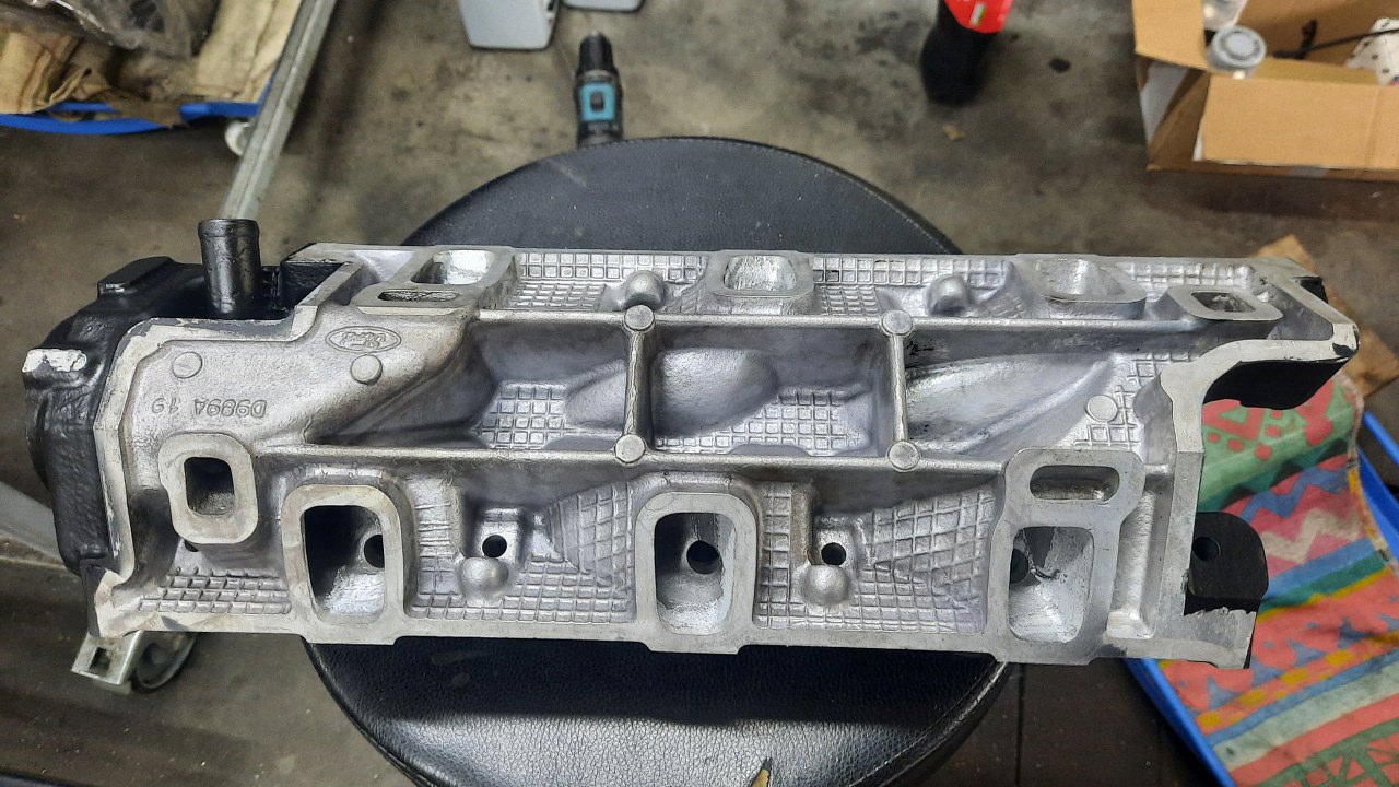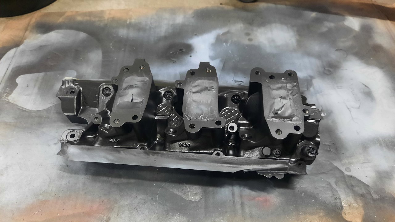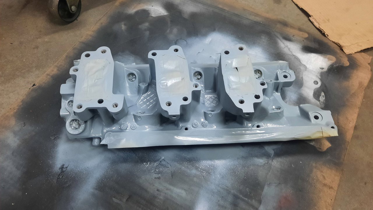 Równolegle z przygotowywaniem głowic, czyściłem i malowałem kolektor dolotowy. Też dostał swoją warstwę podkładu epoksydowego.