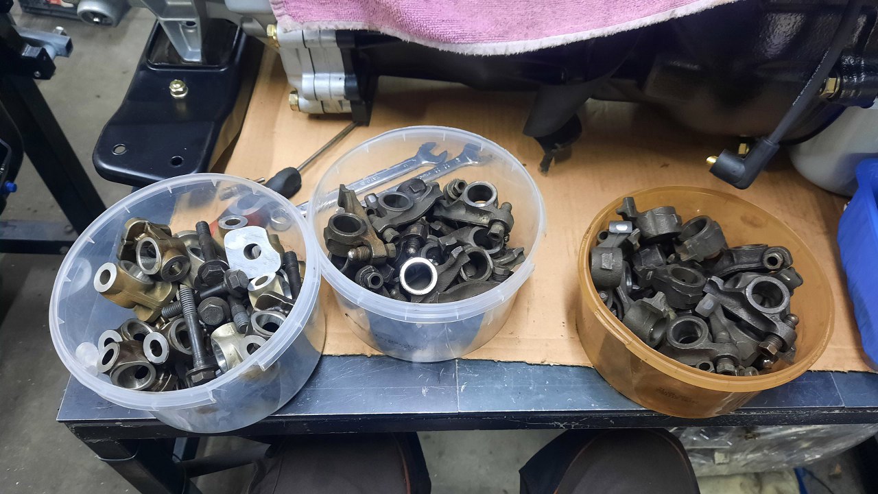 Same dźwigienki posegregowałem na trzy kupki: dobre, od biedy się nadadzą i do wywalenia. Na całe szczęście było ich tyle, że na kupce "dobre" były dwie więcej, niż są potrzebne w silniku.