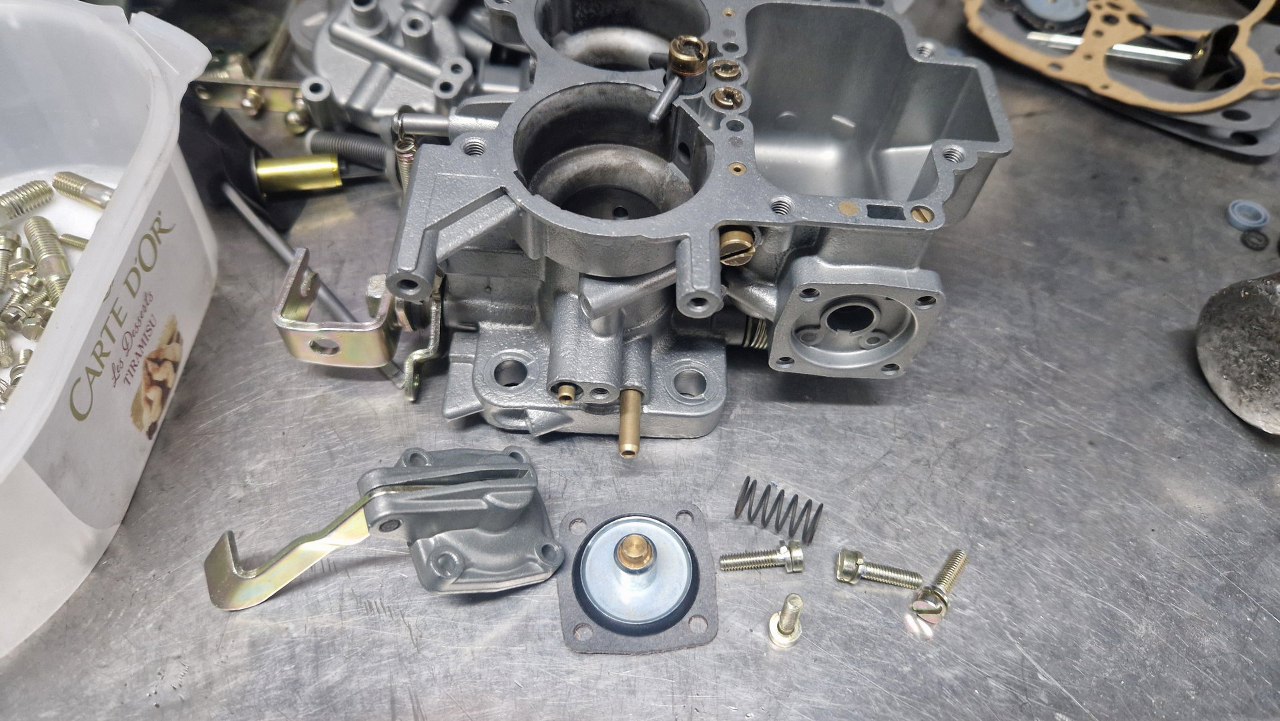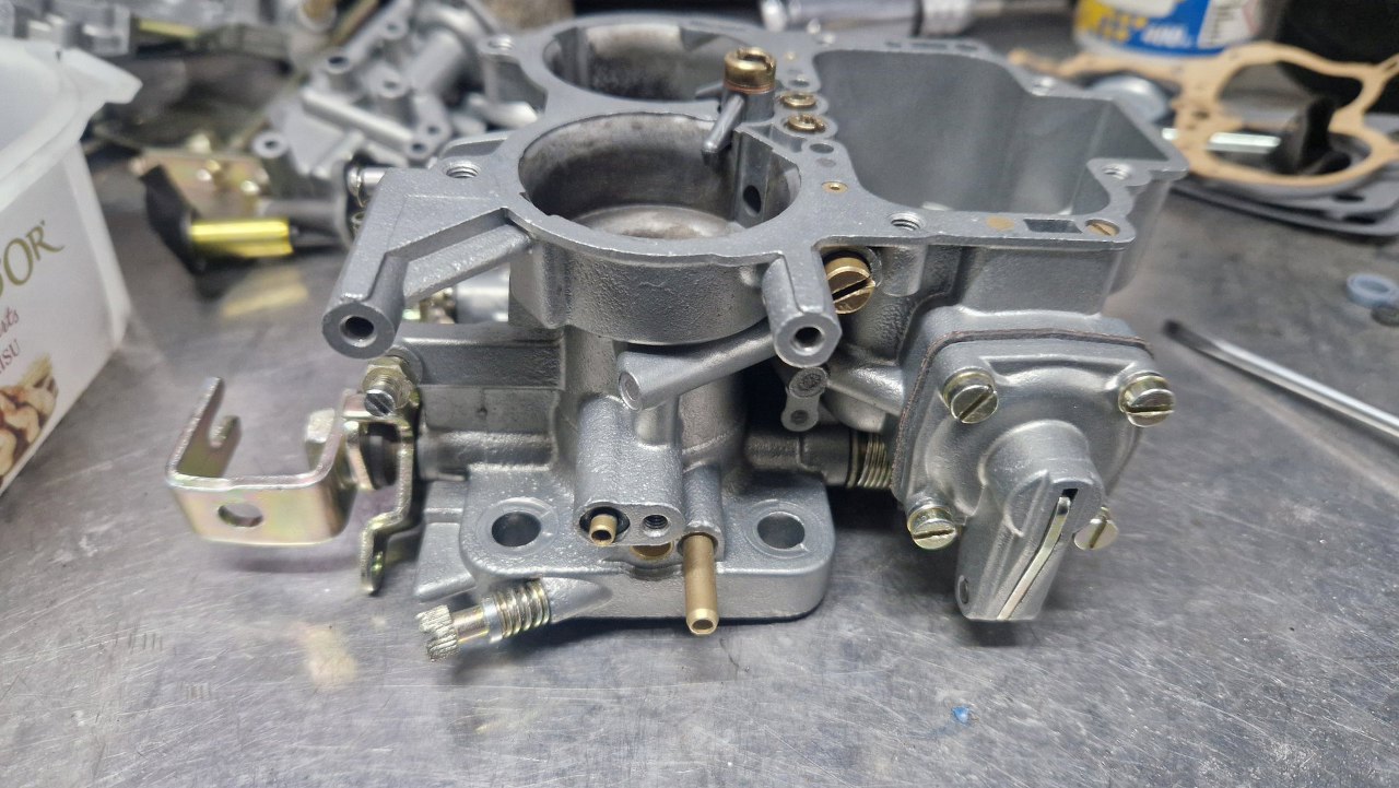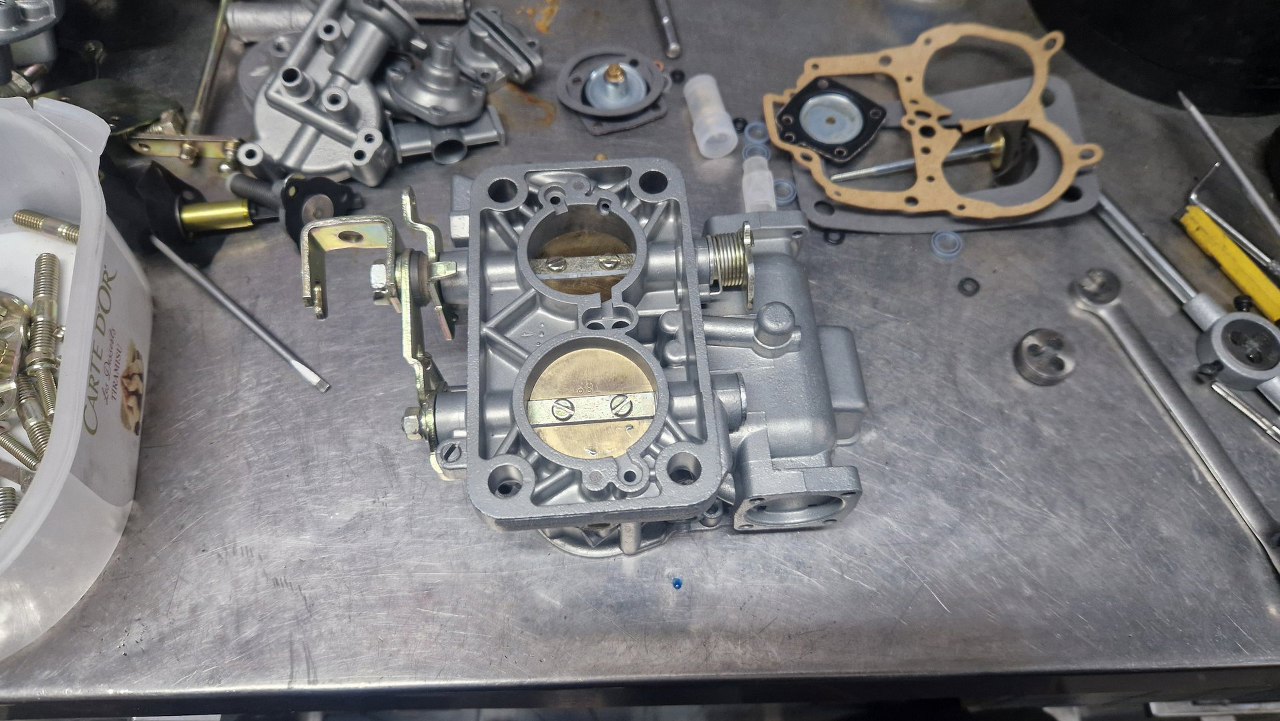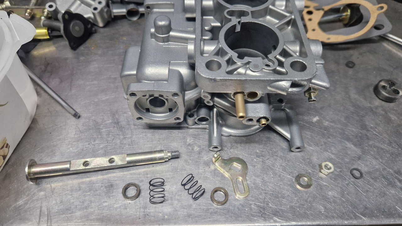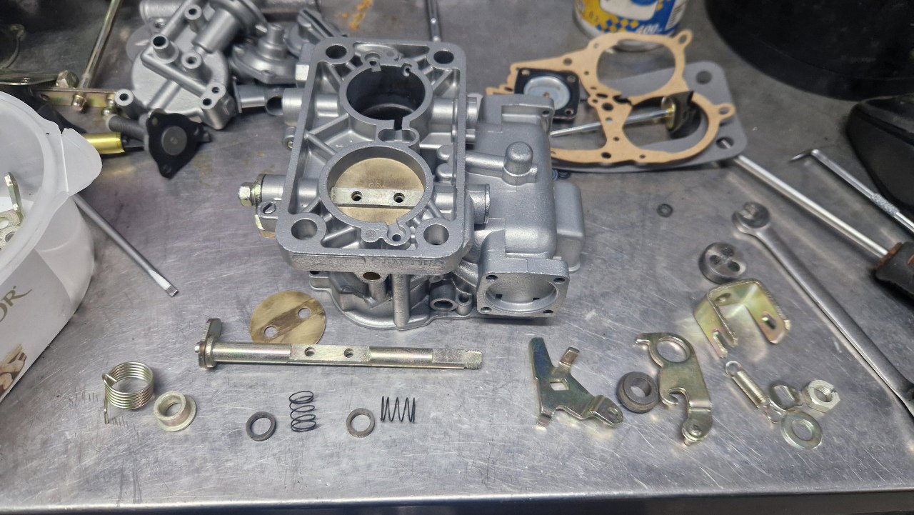 Po odnowieniu korpusu gaźnika i ocynkowaniu śrubek mogę to już poskładać.