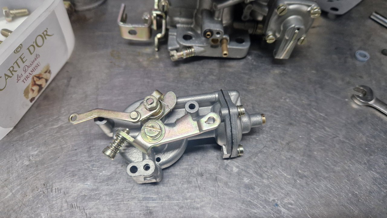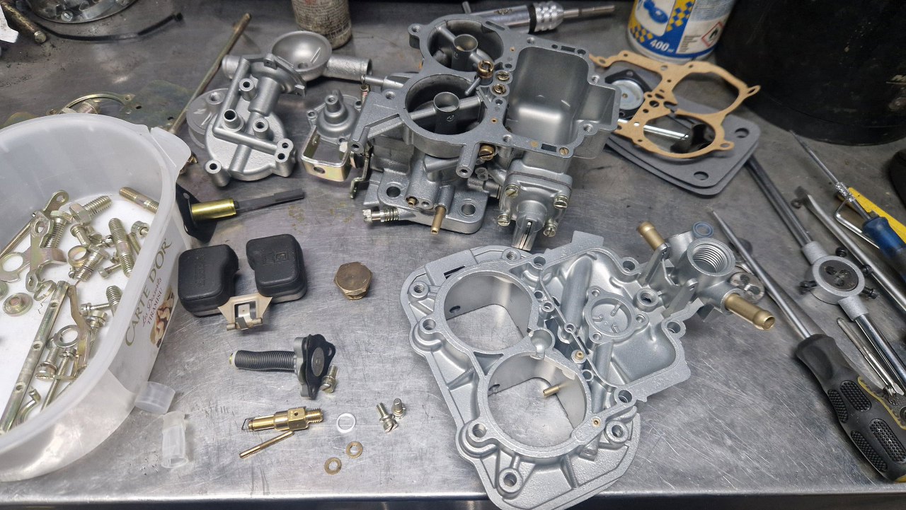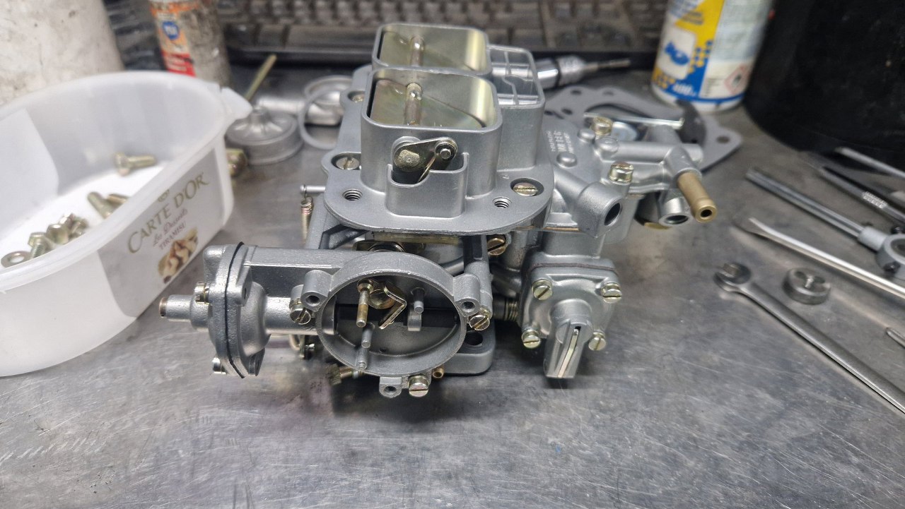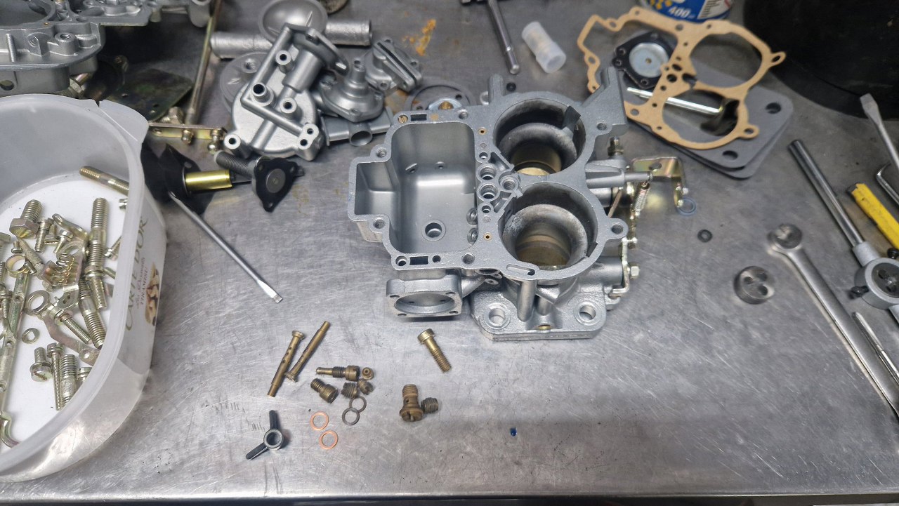 Po odnowieniu korpusu gaźnika i ocynkowaniu śrubek mogę to już poskładać.