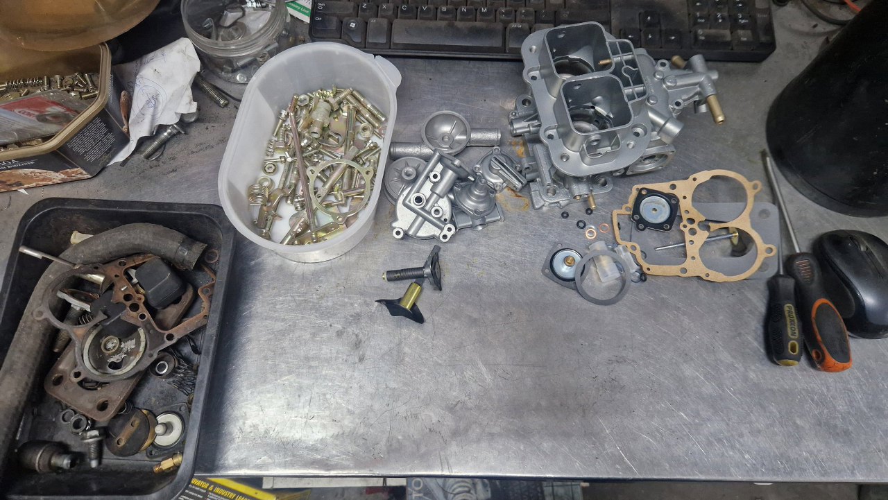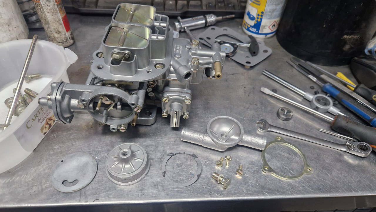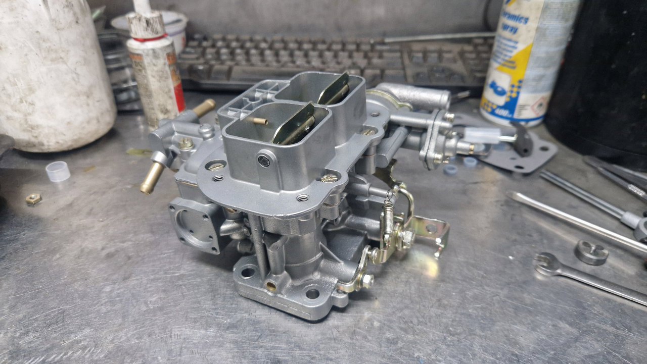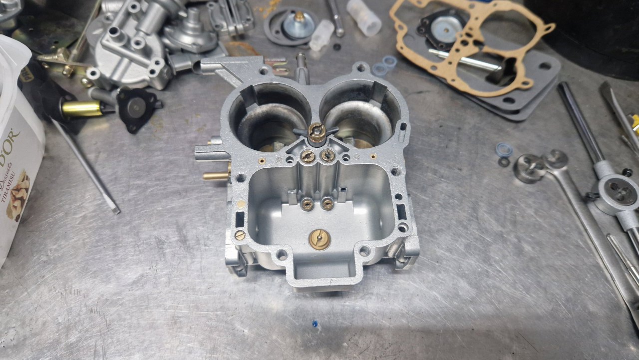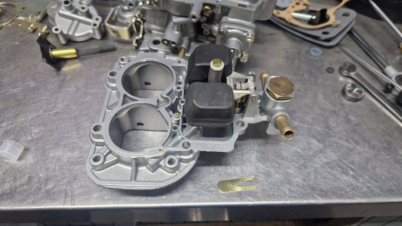 Po odnowieniu korpusu gaźnika i ocynkowaniu śrubek mogę to już poskładać.