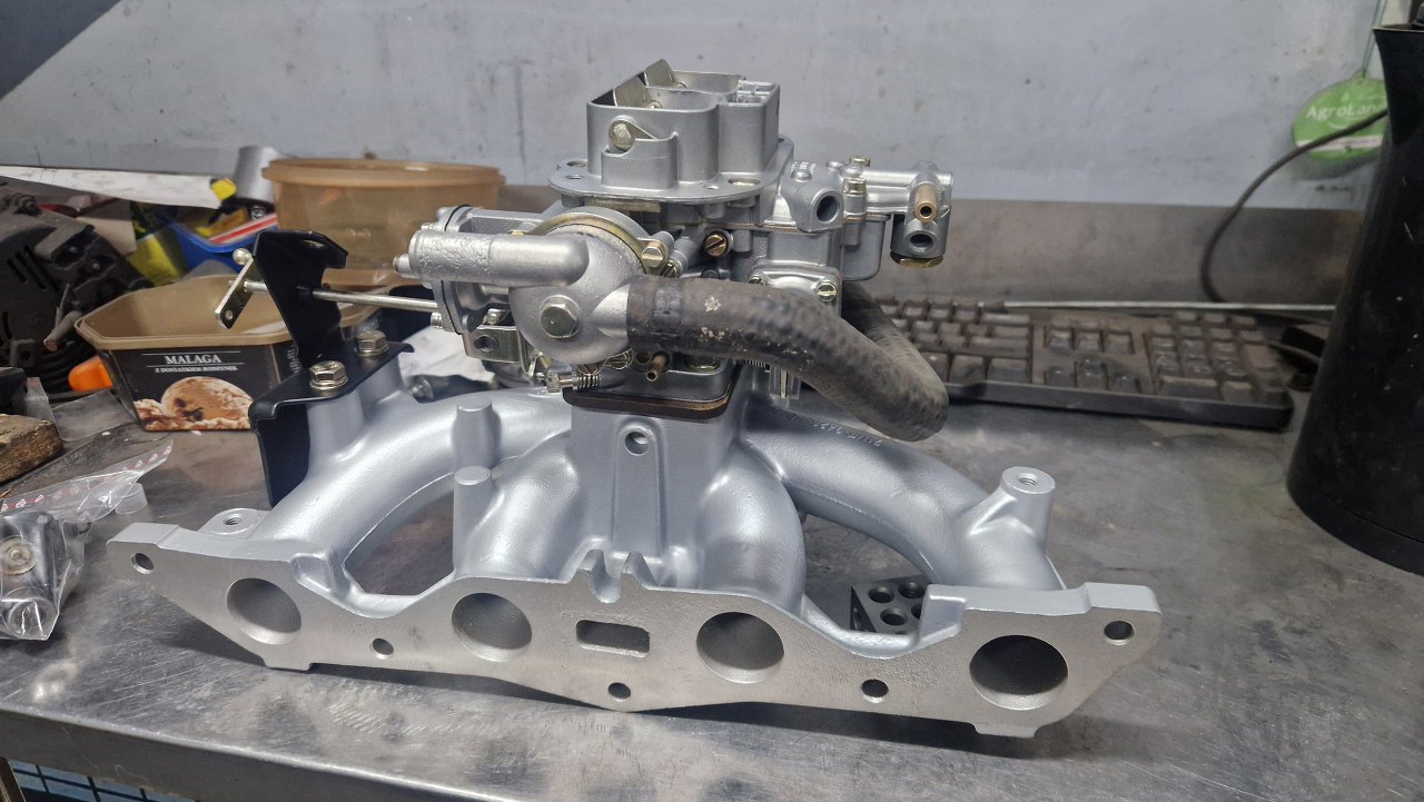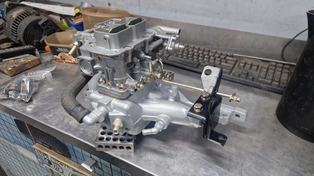 Przykręciłem do niego gaźnik i mocowanie mechanizmu przepustnic.
