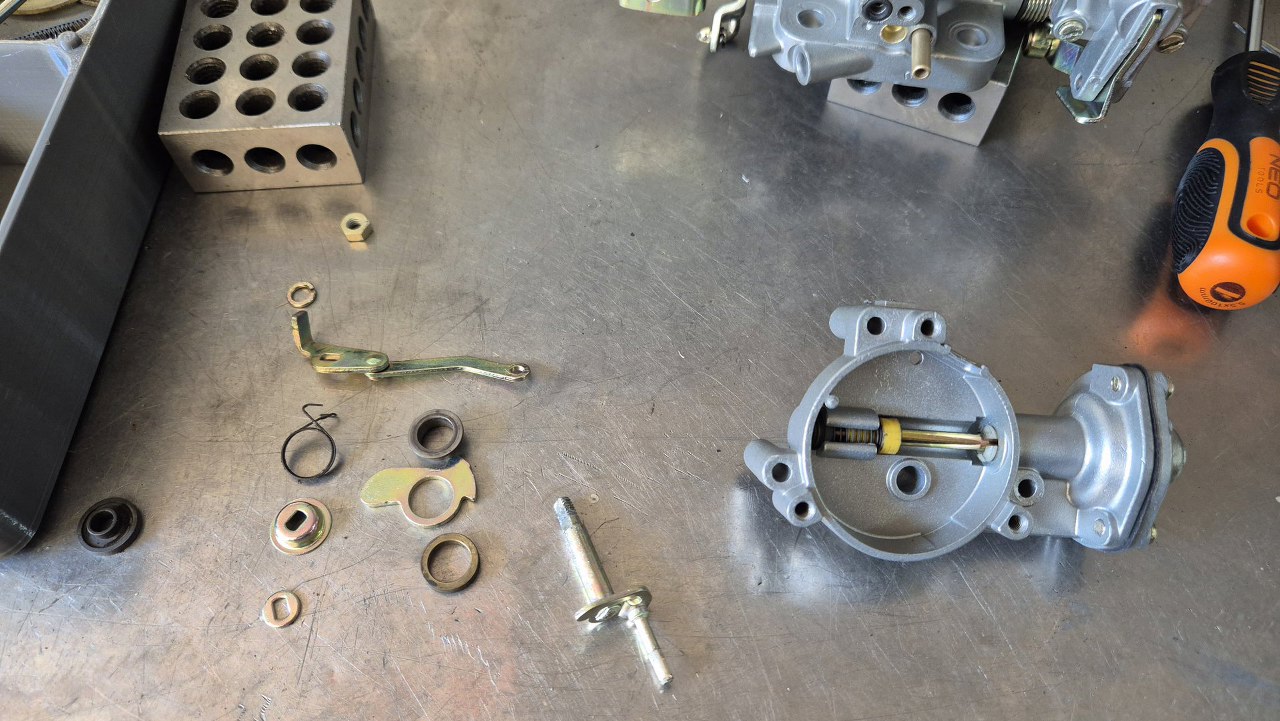 Odwracam gaźnik i zabieram się za mechanizm przepustnic.