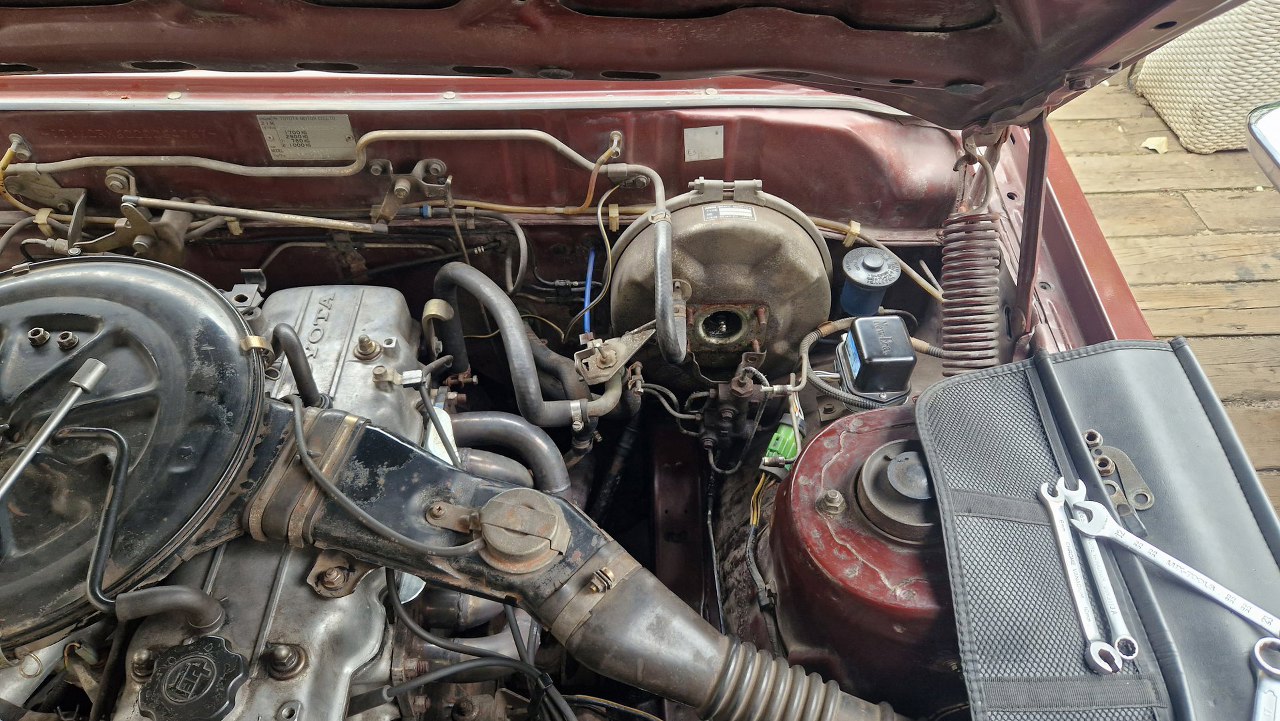Zacisnąłem prowizorycznie rurkę idącą na tył samochodu, żeby działały tylko przednie hamulce. Właściciel ma zdobyć potrzebne części, ale weź i kup cokolwiek do Toyoty Cressidii :).