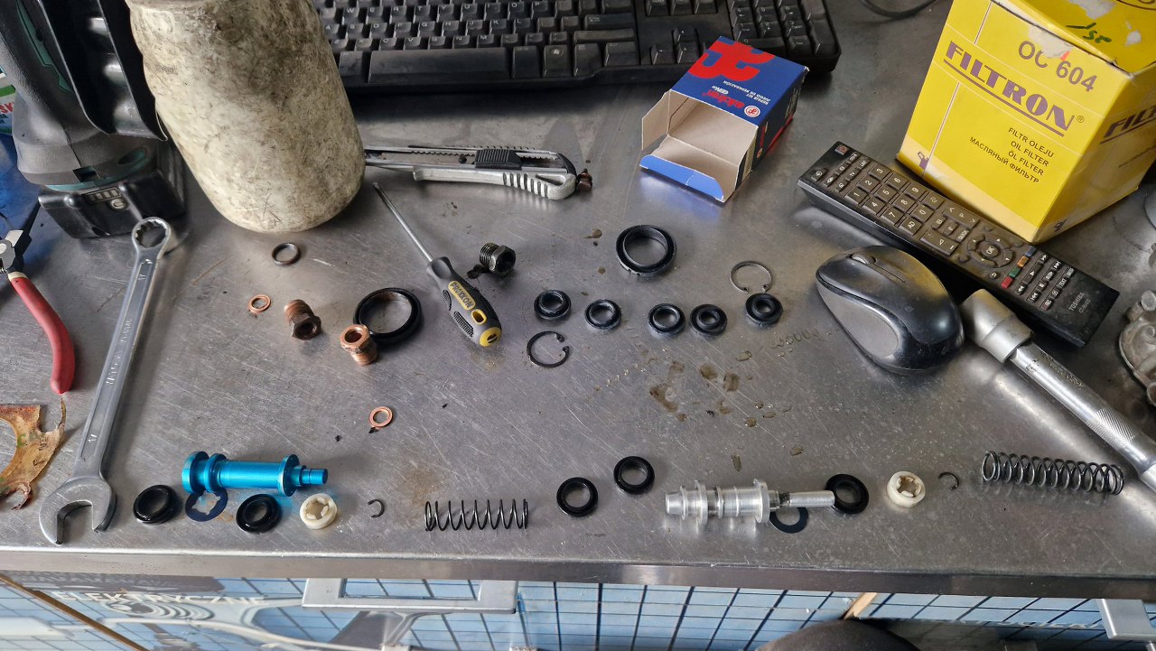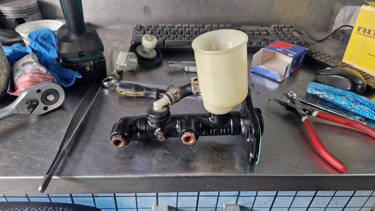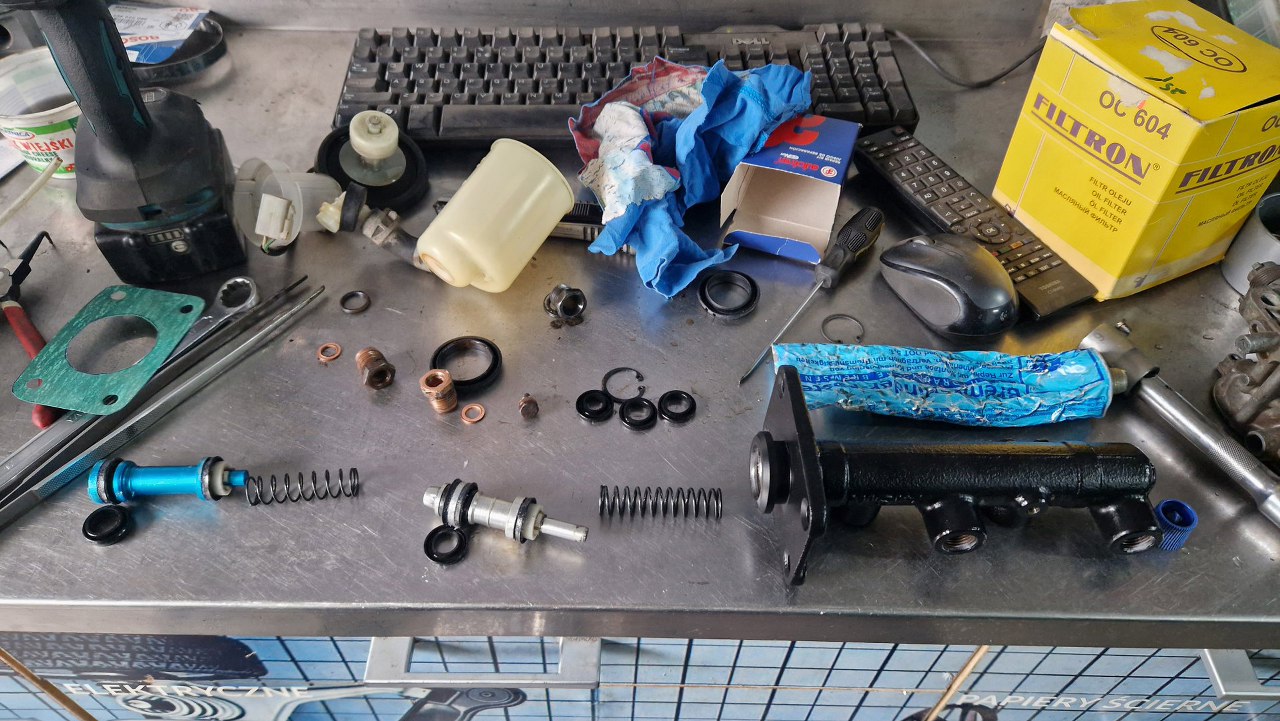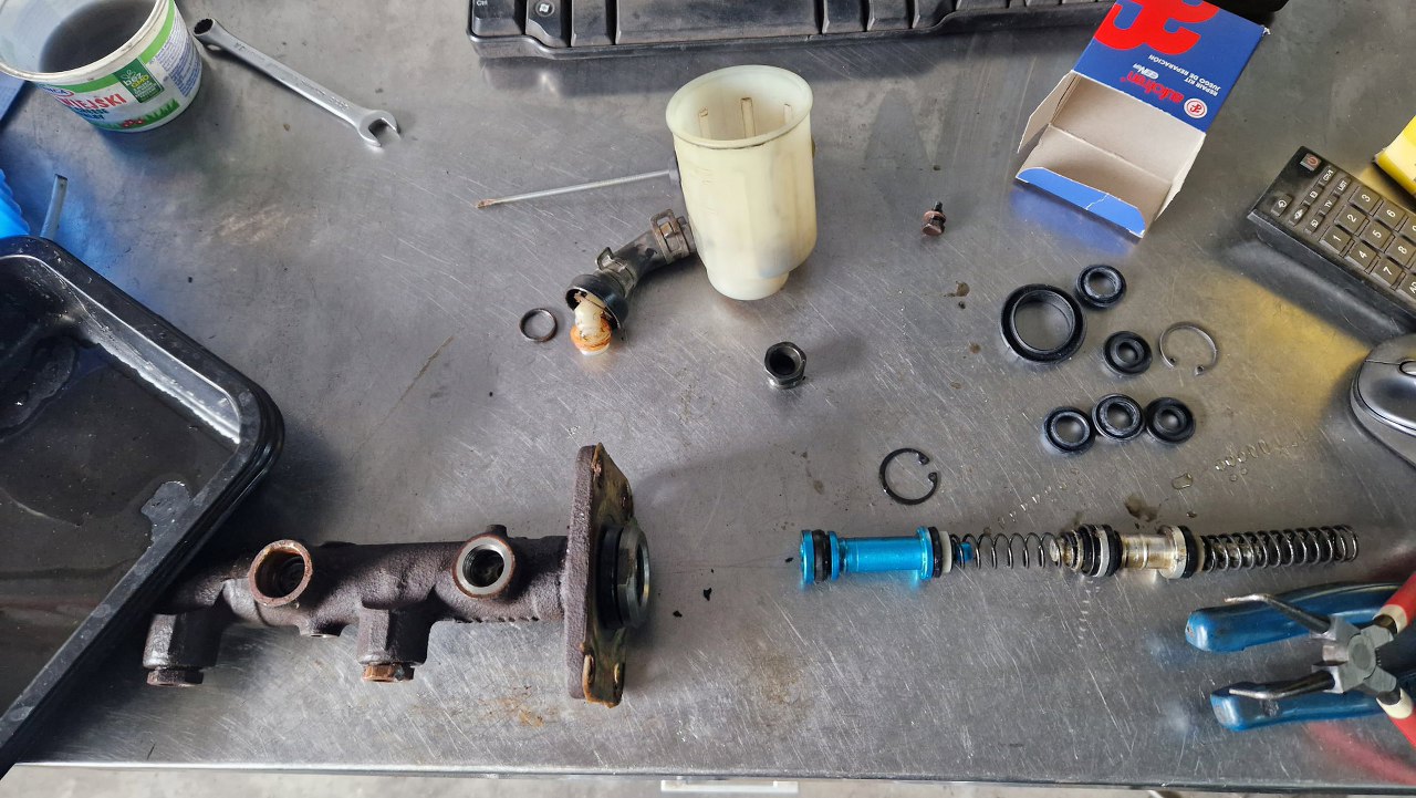 Zawitała do mnie Toyota Cressida z 1982 roku. Ma kilka problemów, ale zajmiemy się tym stopniowo, pomału. Na pierwszy rzut idą hamulce, a w zasadzie zpowalniacze. Coś jest nie tak. Ponieważ właściciel miał już kupiony zestaw naprawczy pompy hamulcowej, to od wymiany w niej gumek zaczniemy. Pompa została odkręcona.