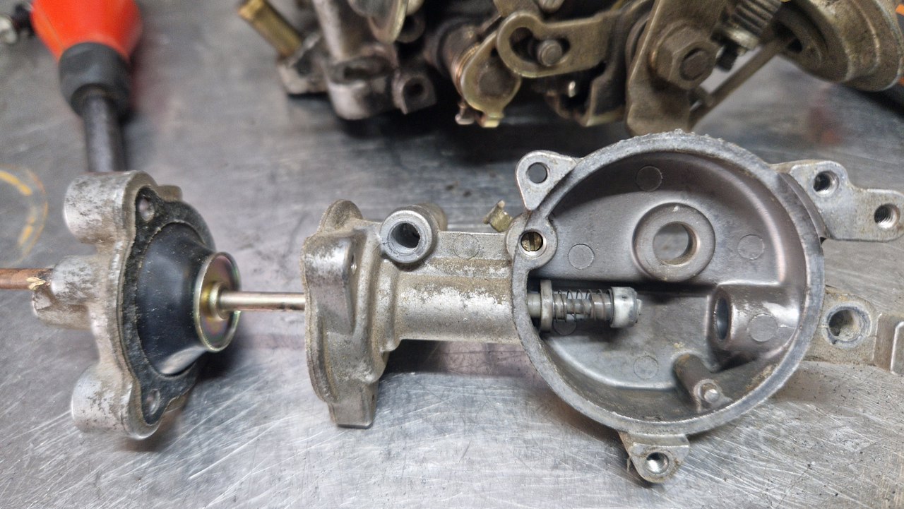Zdjęta membranka ssania. I na tym etapie okazało się, że zestaw naprawczy jest jednak od niewłaściwego gaźnika...