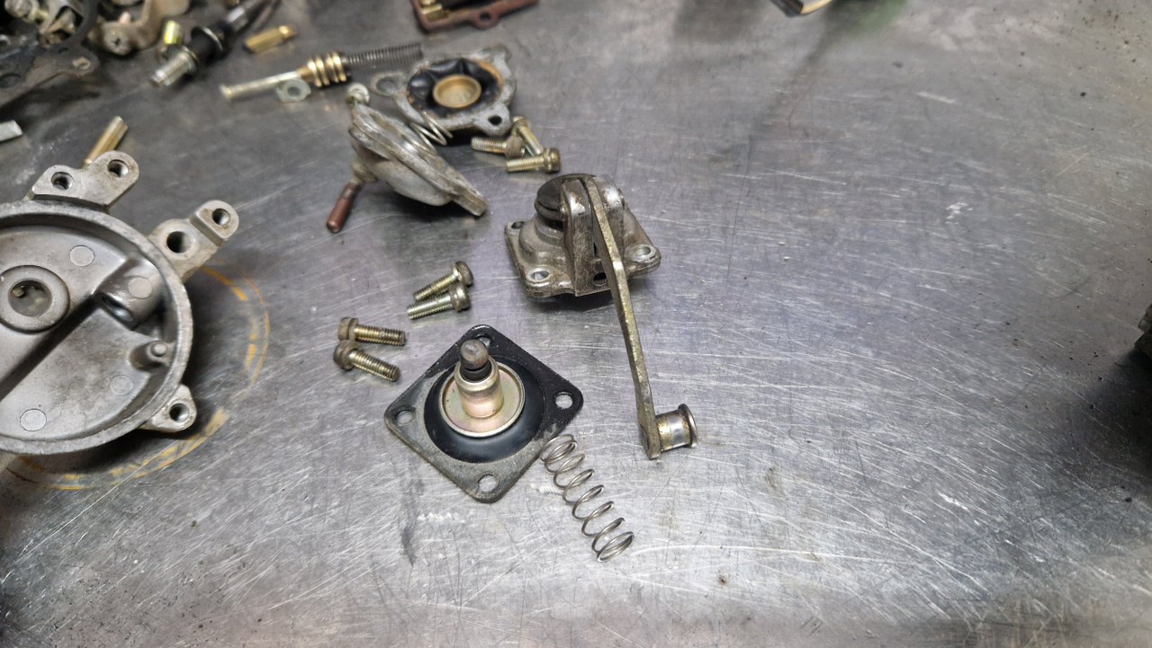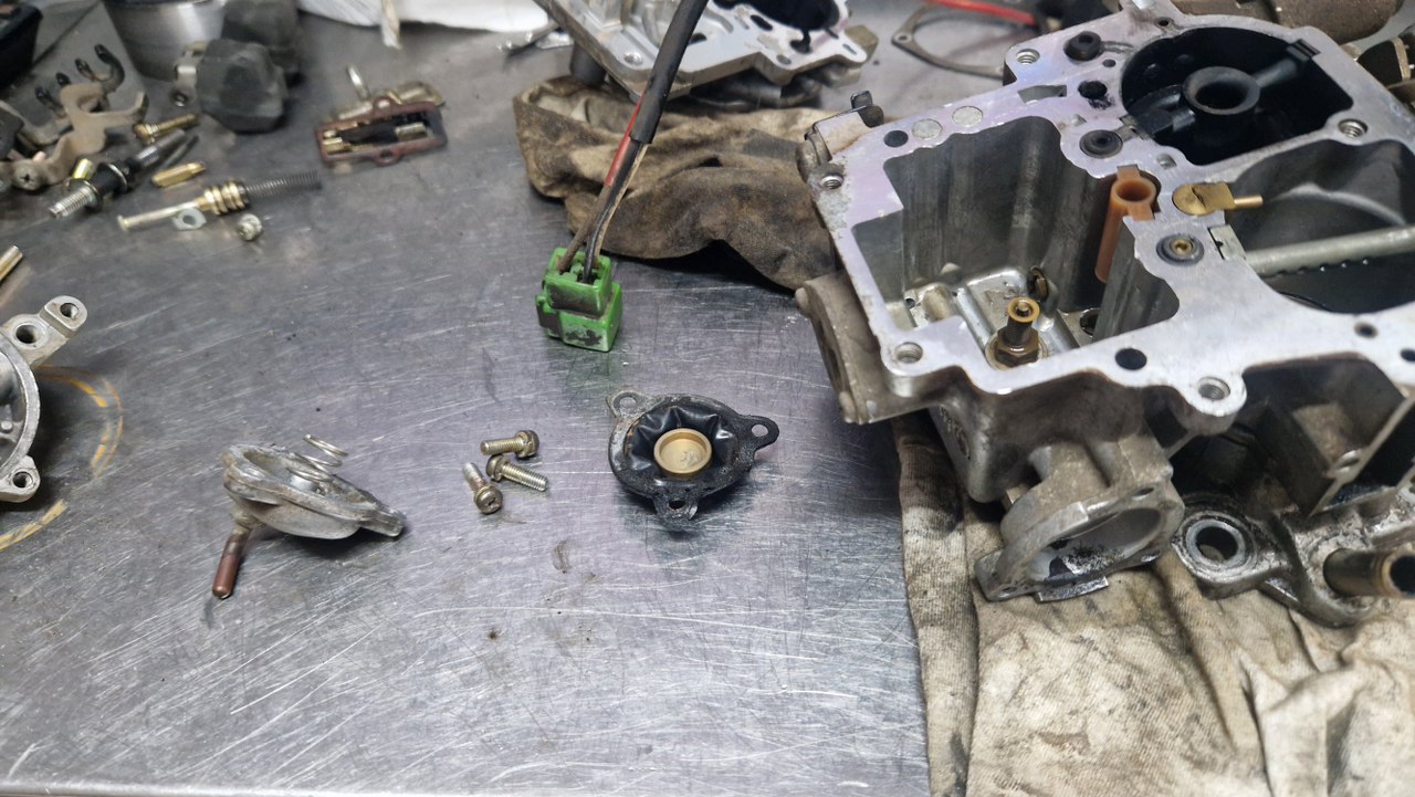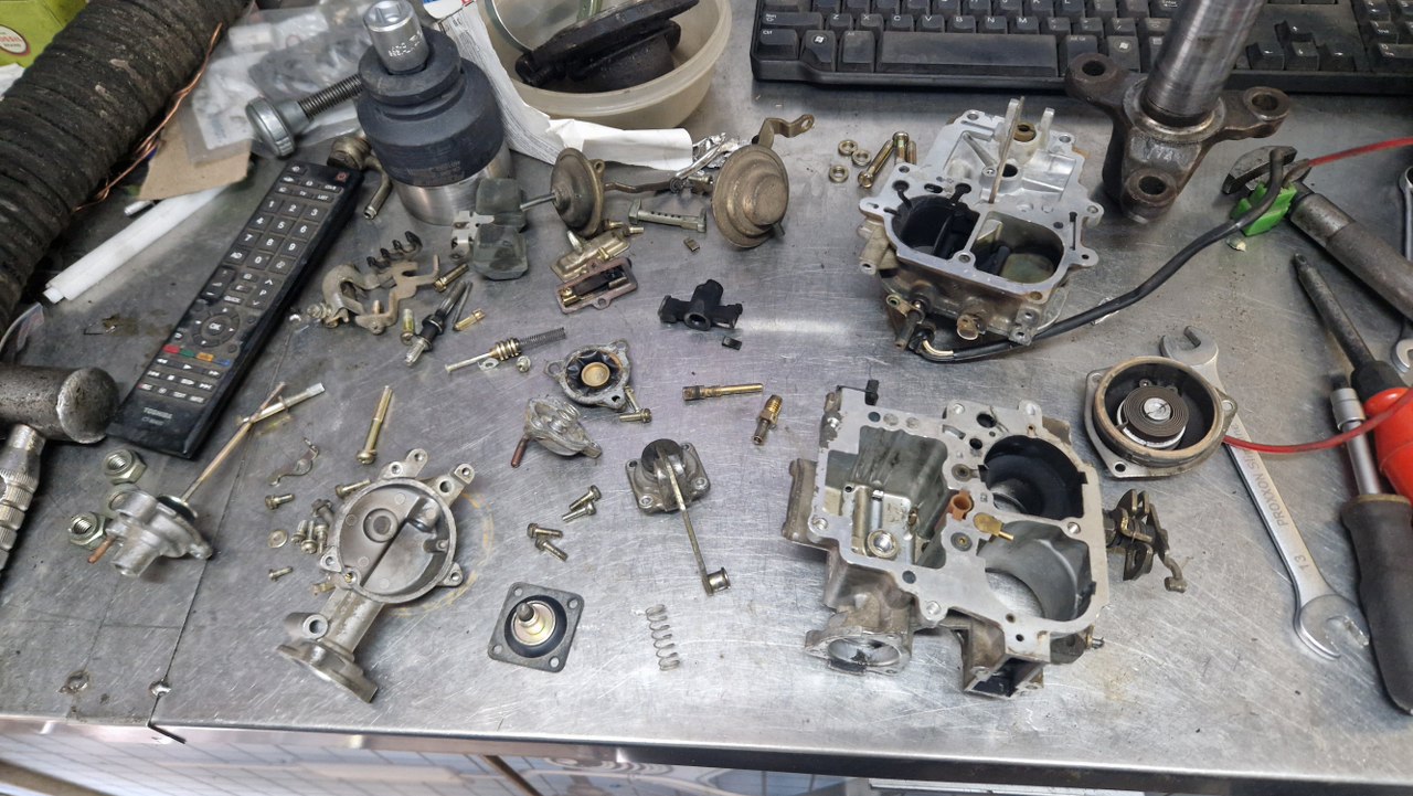 Gotowe, gaźnik rozłożony. Nazbierało się sporo części.