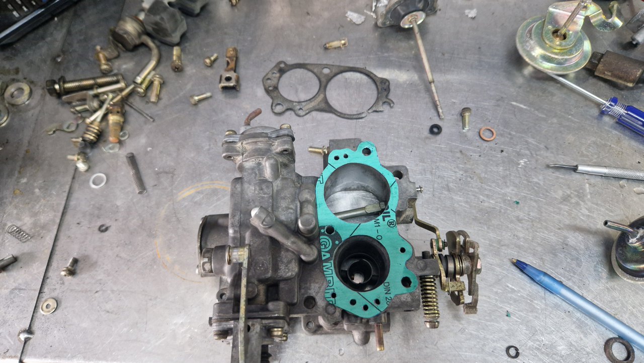 Potem gaźnik trafił na swoje miejsce. Oczywiście części problemów nie dało się zlikwidować, to dopiero udało się później, po wymianie membranek, ale i tak jest lepiej - samochód przynajmniej lepiej się uruchamia i jeździ - tylko bez gwałtownego dodawania gazu, przez uszkodzoną membrankę pompki przyśpieszacza.