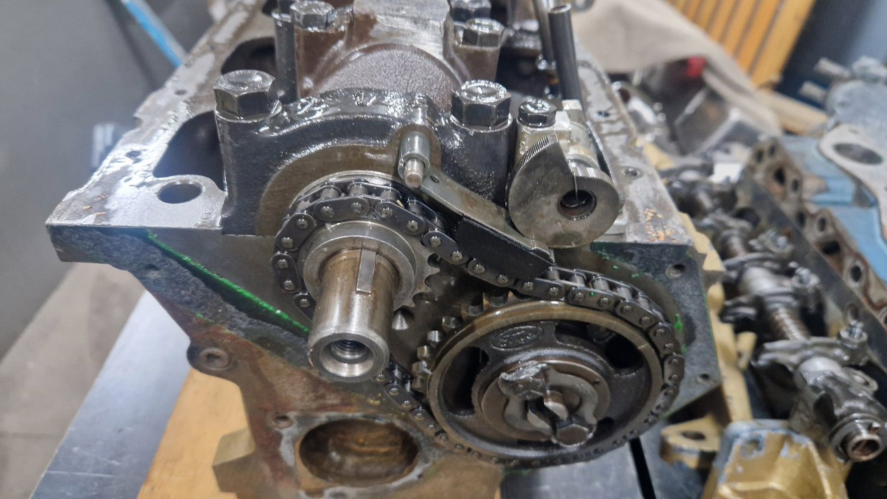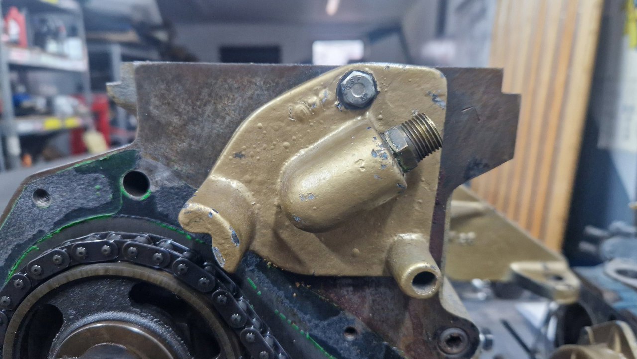 Pora na demontaż rozrządu. Ciekawa konstrukcja, że przy takim dość krótkim łańcuchu i tak jest zastosowany napinacz.