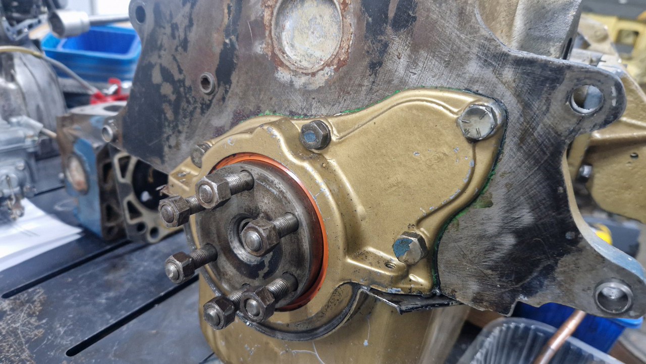 Skoro jesteśmy przy pokrywach, to od razu i tylną ogarnijmy. Ta pokrywa jest obudową tylnego uszczelniacza wału i zasłania otwór wałka rozrządu w bloku.
