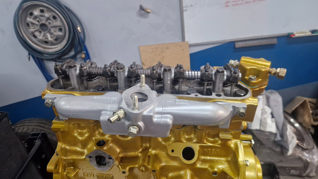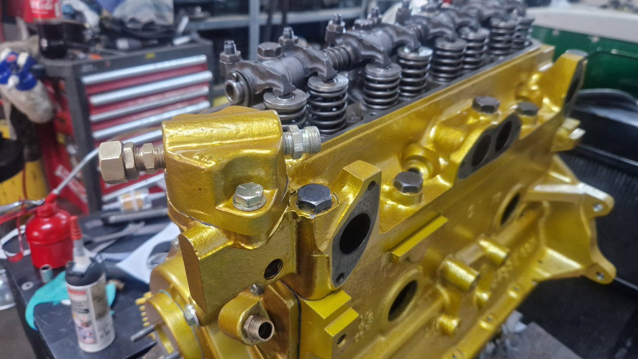 Skoro nie mogłem założyć miski na gotowo, to załapałem ją na razie tylko po to, żeby móc silnik postawić do pionu i działać dalej. Przyniosłem z półki głowicę.