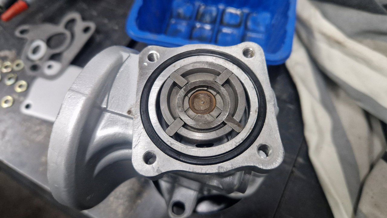 Po odnowieniu i pomalowaniu składam. Istotne jest, żeby nie pomylić tych płytek, którą stroną mają się stykać z obudową. Oring uszczelniający przy pierwszym odpaleniu nieco popuszczał, więc potem wymieniłem go na inny.