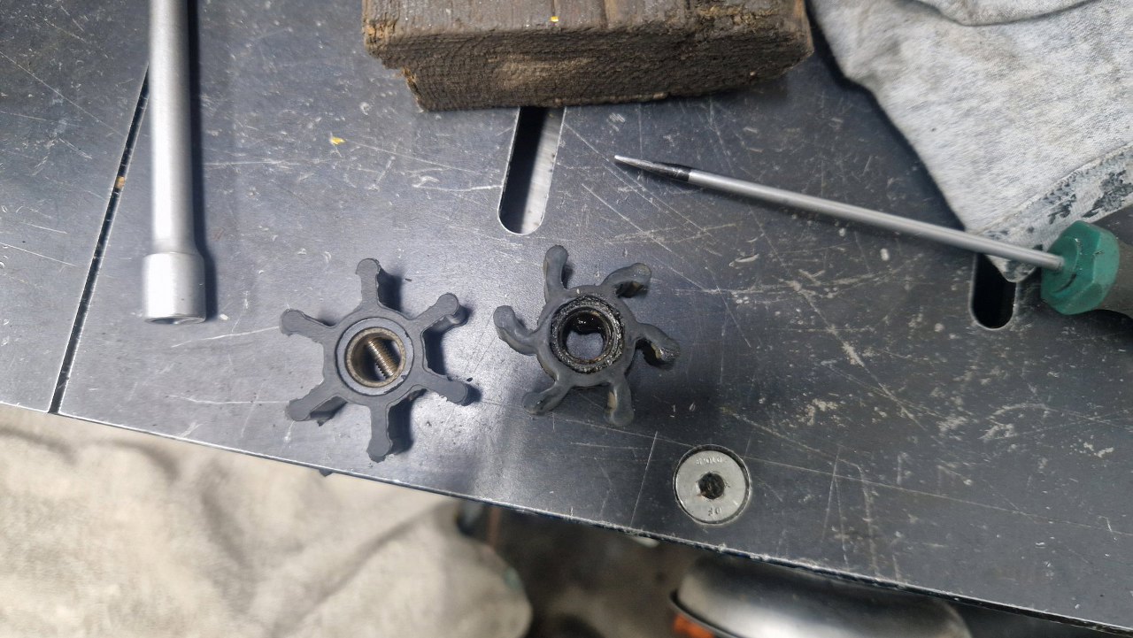 Założony nowy. Środek wirnika nie pokrywa się ze środkiem miejsca na wirnik, co widać po ułożeniu ramion.
