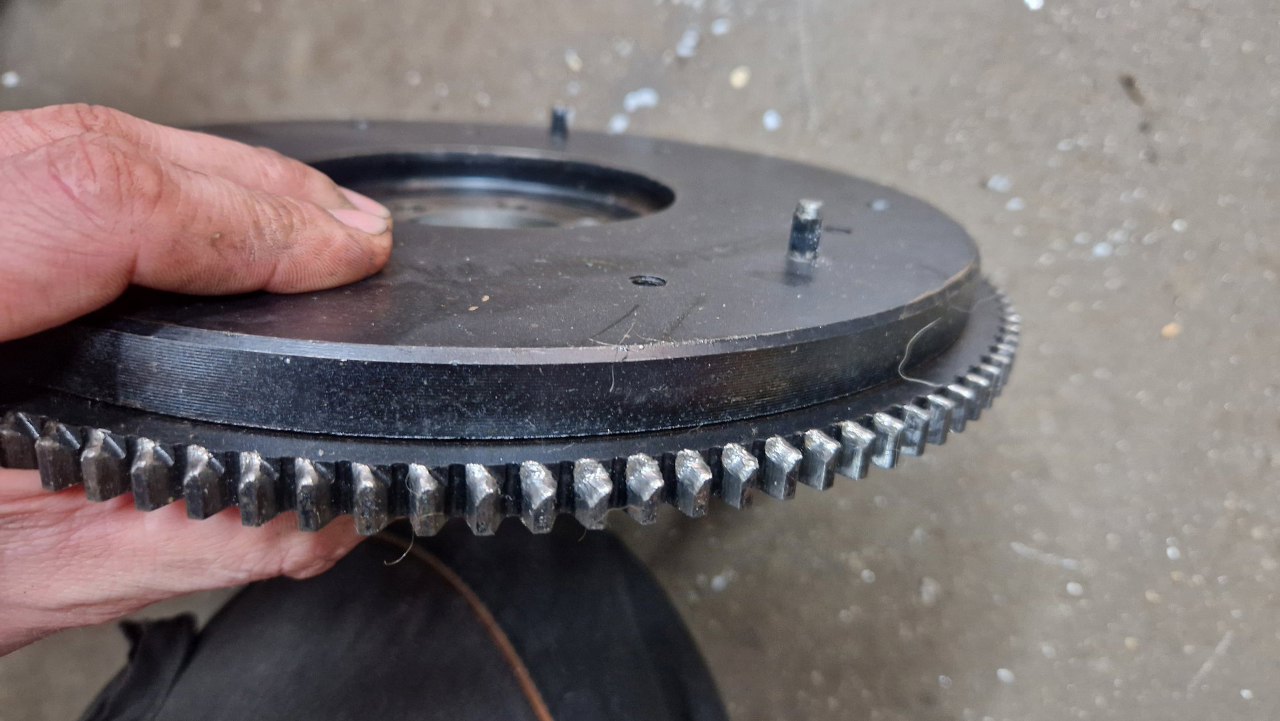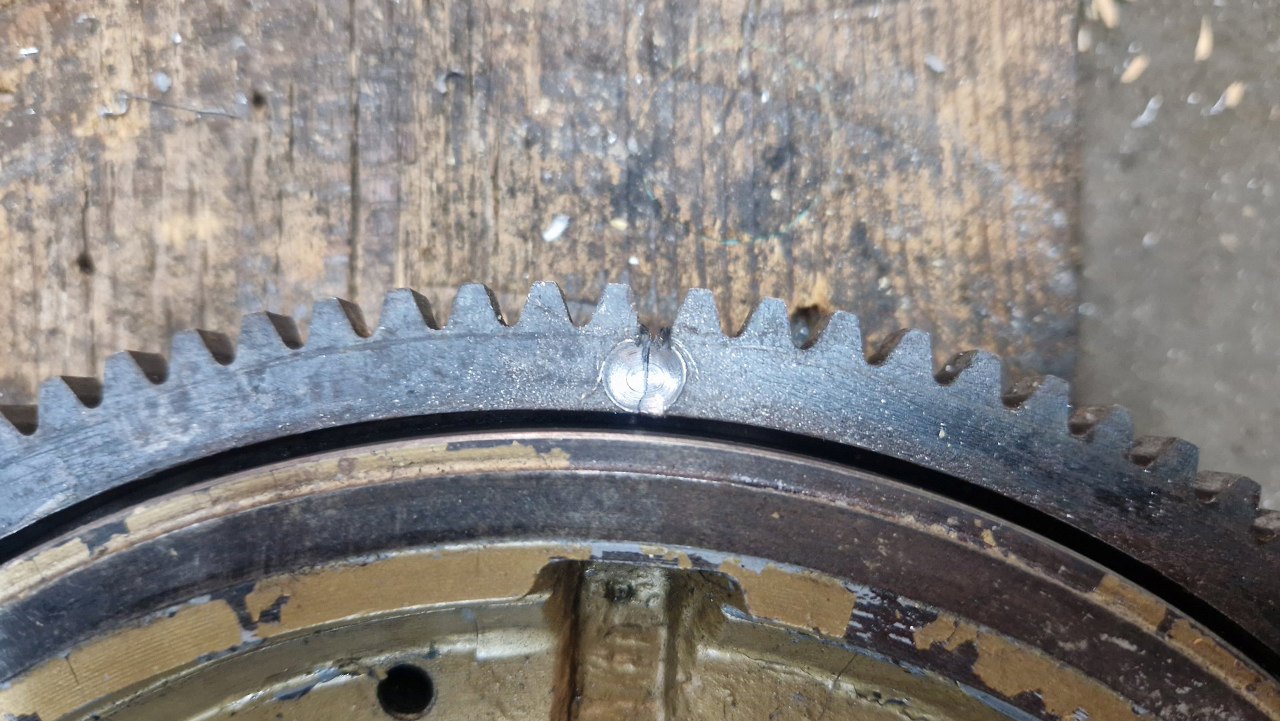 Przechodzę na tył silnika. Koło zamachowe miało już bardzo zużyte zęby wieńca pod rozrusznik.