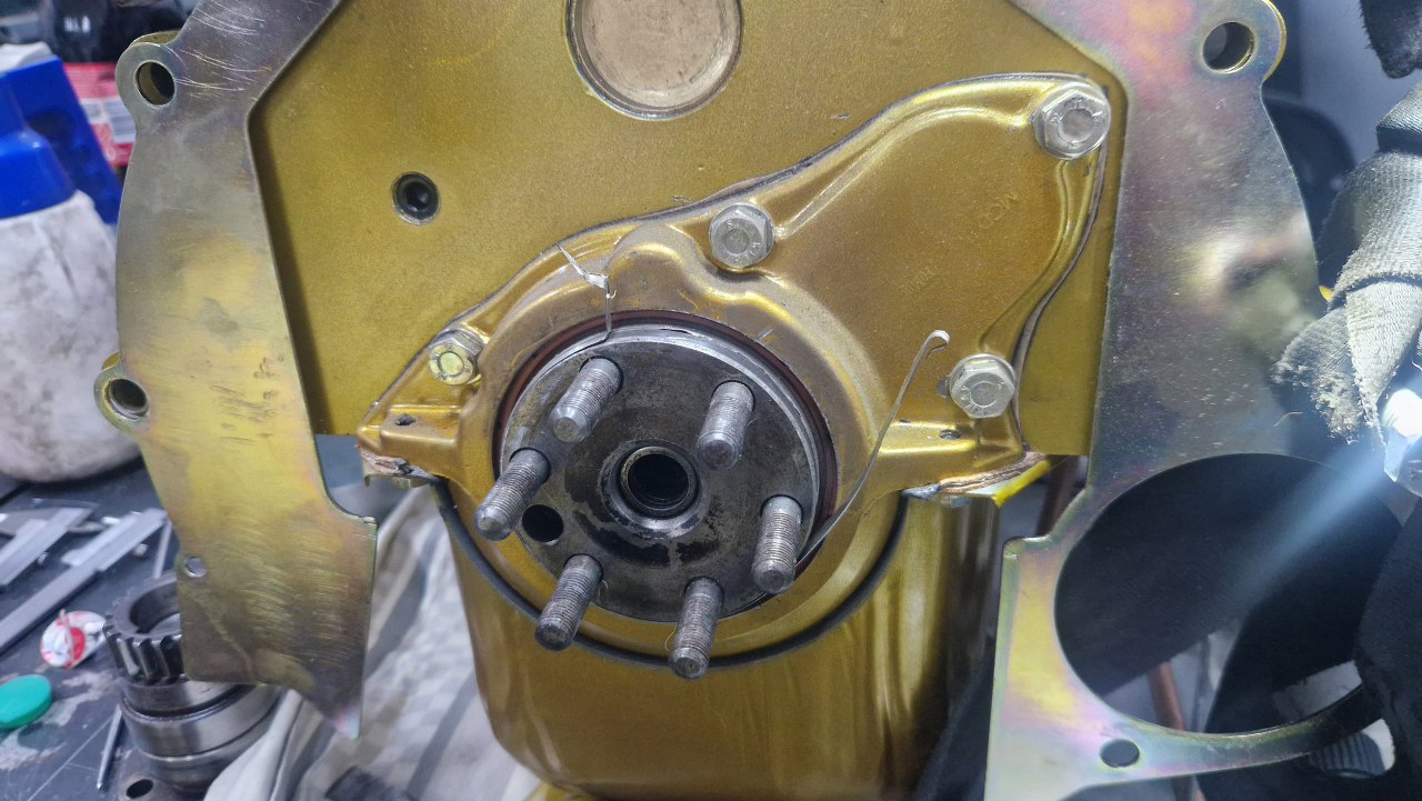 Gdyby nie to, że wcześniej na wał nabiłem tuleję naprawczą płaszczyzny pod uszczelniacz. Teraz wał ma większą średnicę i nie mieści się w koło zamachowe...