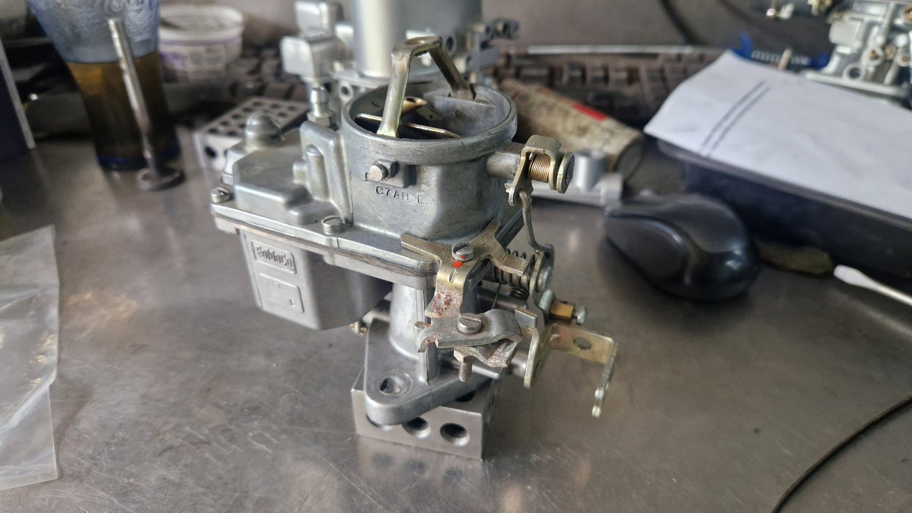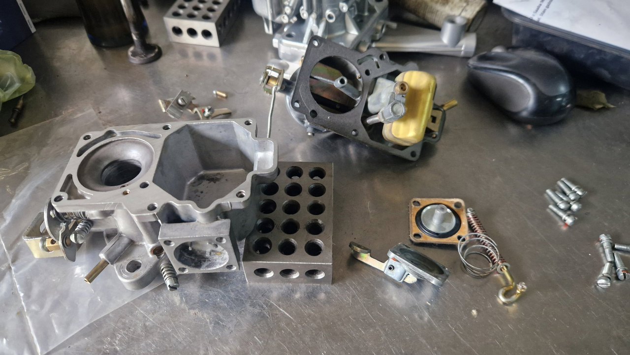 Okazał się bardzo czysty w środku i niedawno po regeneracji. Niestety, później, przy uruchomieniu, nie mogłem z nim dojść do ładu i poprawnie go ustawić. Bardzo dziwne, bo jest to bardzo prosty gaźnik... Ostatecznie założyłem prawie nowy gaźnik, który właściciel kupił na zamianę jakiś czas temu. To pomogło, mogłęm już wyregulować wszystko jak trzeba, ale korci mnie, żeby zajrzeć tu jeszcze raz i dojść do tego co w tym jest nie tak...