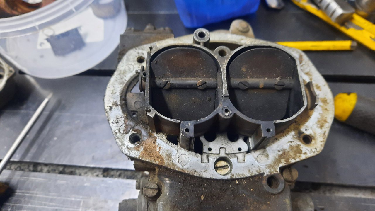 Po zdjęciu uszczelki widać już komorę pływakową.