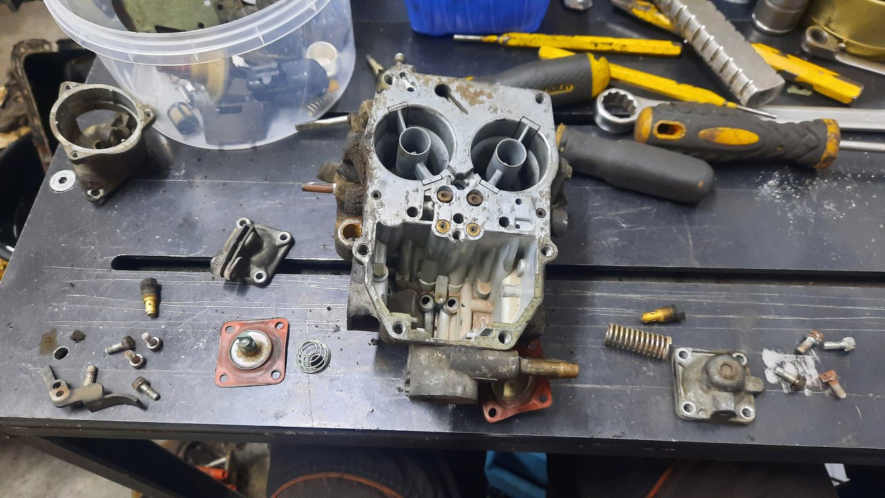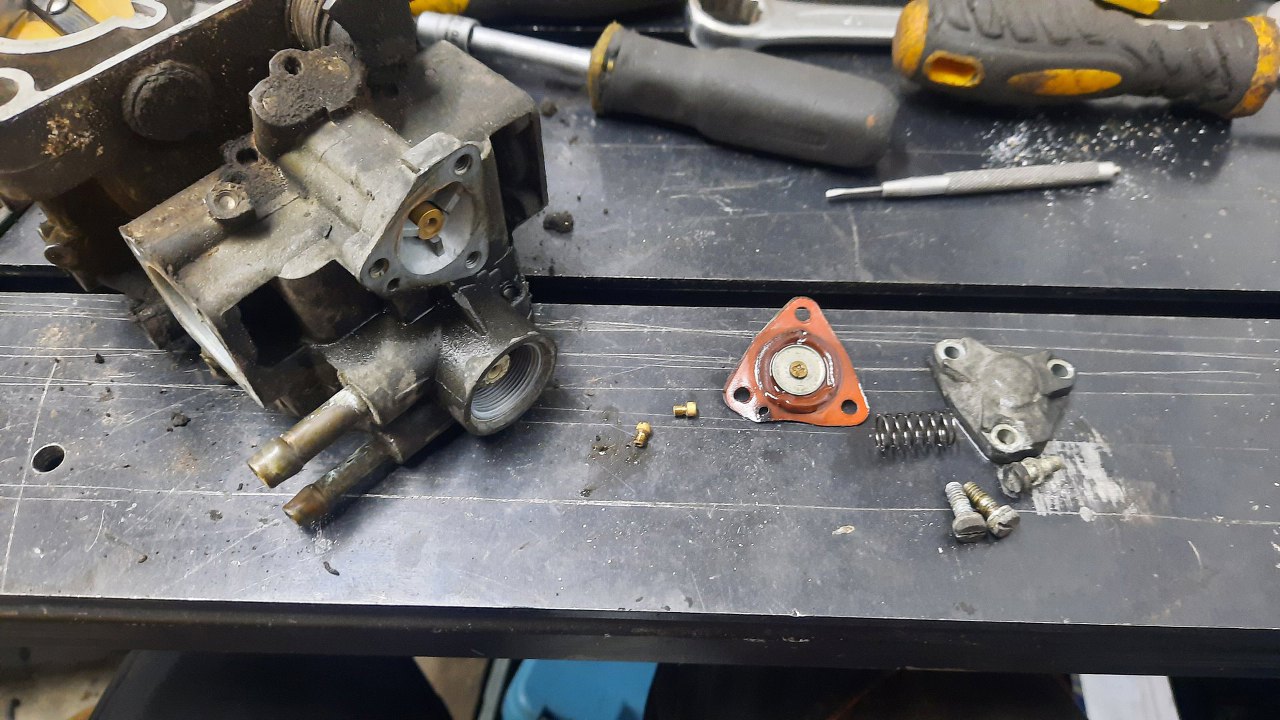 No, to teraz można zająć się gaźnikiem. Po zdjęciu z silnika wygląda na swoje 38 lat :).