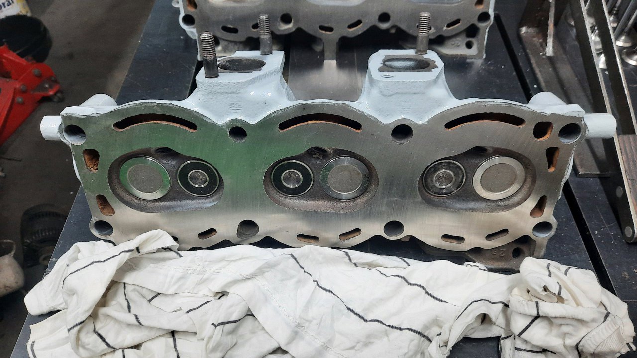 Założyłem uszczelniacze zaworowe. W tych głowicach uszczelniacze tego typu są tylko na zaworach ssących, wydechowe mają "parasolki".