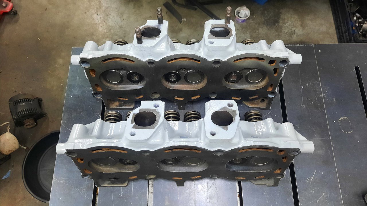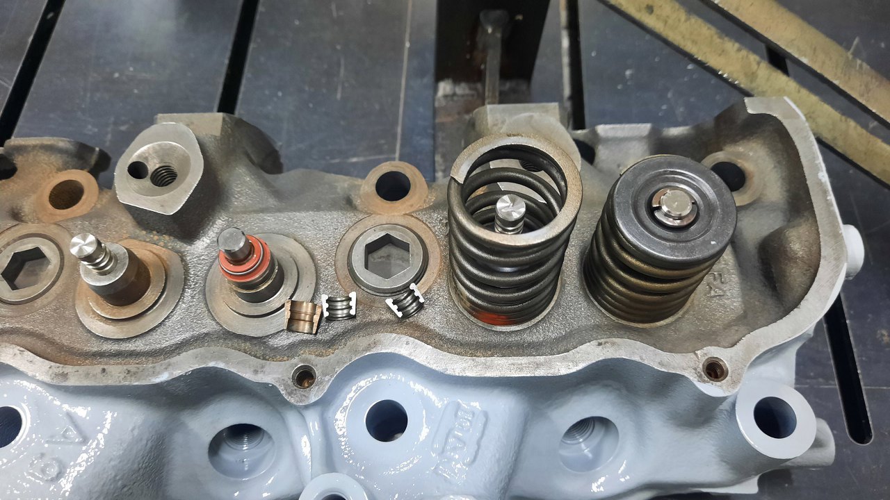 Następne do przygotowania wziąłem głowice. Miałem już je od dawna gotowe i wszystkie części domyte, ale bardzo, bardzo długo czekałem na dostawę nowych zaworów ssących. W końcu dotarły i mogę składać.