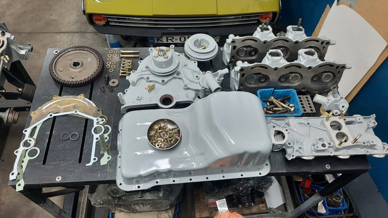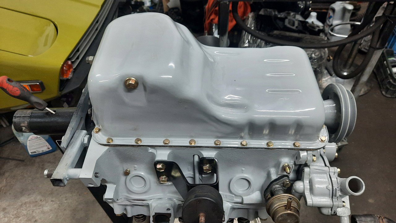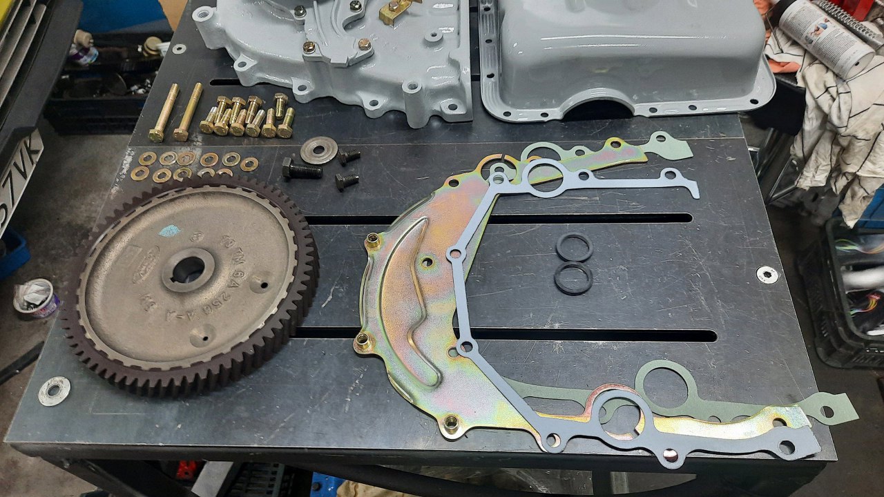 Przygotowane jest umyte koło wałka rozrządu i ocynkowana blacha pod pokrywę.