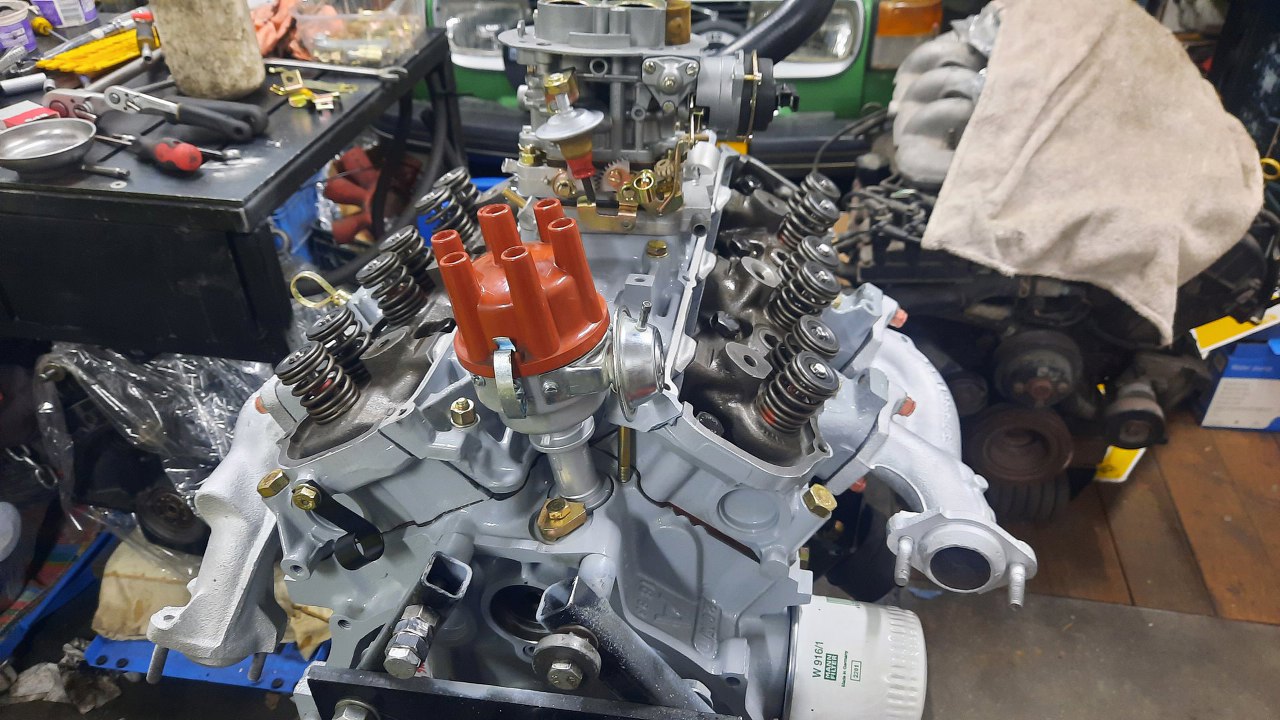 Włożyłem na miejsce aparat zapłonowy i wstępnie ustawiłem. Co ciekawe, trafiłem nawet na te same miejsce, które ktoś kiedyś zaznaczył przecinakiem na granicy aparatu i bloku. Ciekawe, czy będzie to właściwe ustawienie :).