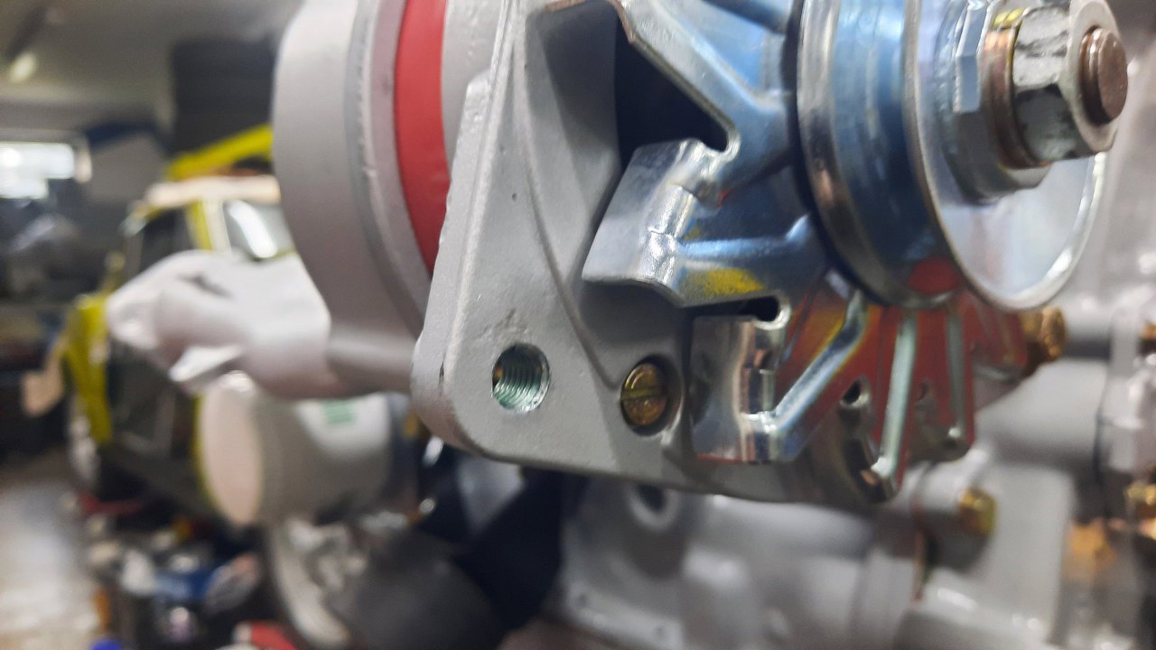 Założyłem alternator. Dolna śruba, do napinacza, byłą nieoryginalna, za długa, bo gwint w alternatorze był zerwany. Naprawię i to... najpierw gwintownik.