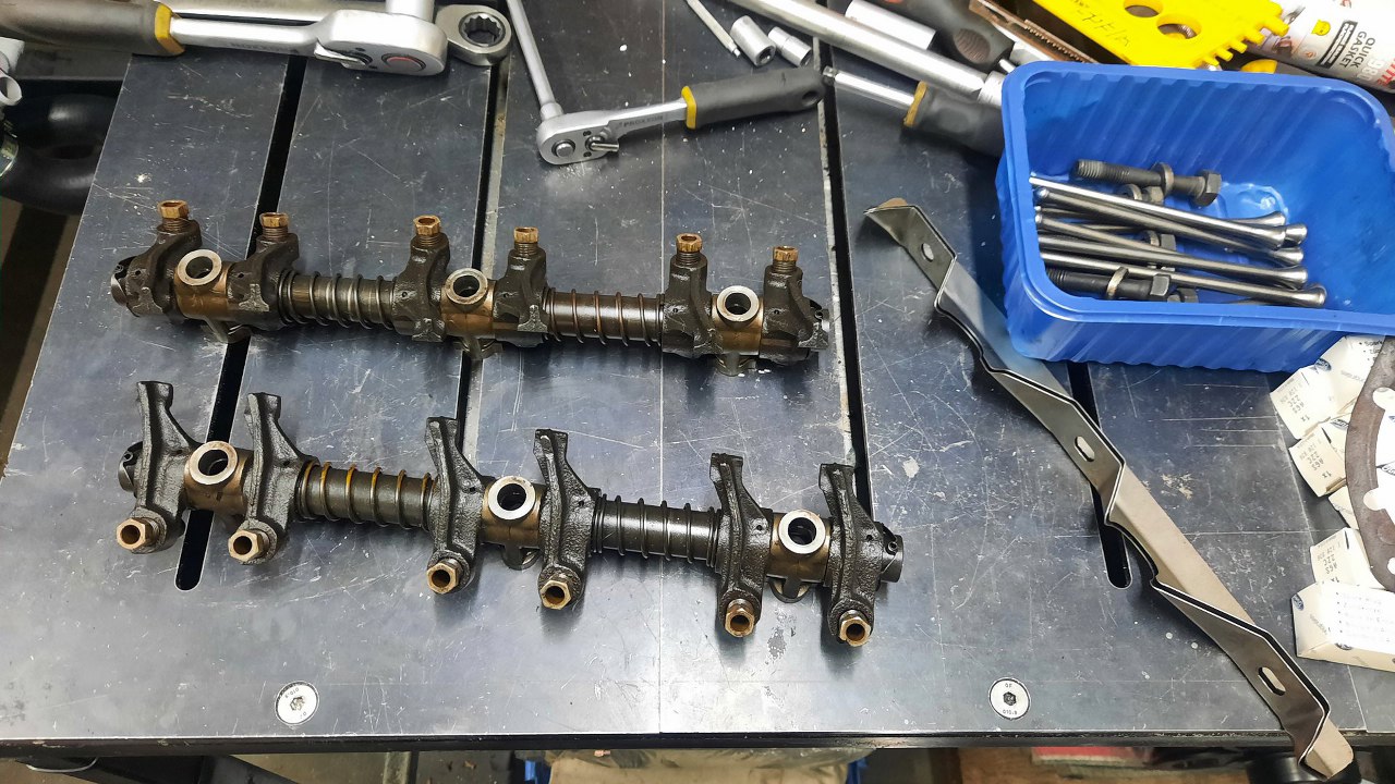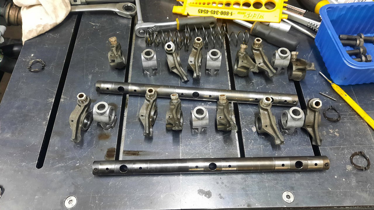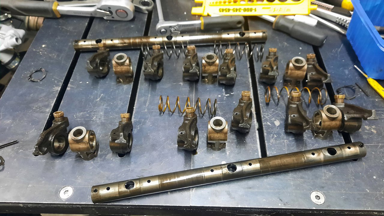 Trochę to odwlekałem, bo przykręcanie czystych części jest przyjamne, a tu muszę jeszcze trochę je poczyścić. Dźwigienki zaworowe.