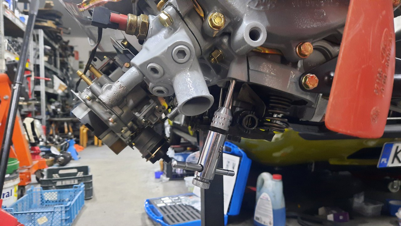 Przykręciłem pokrywy zaworów Przy okazji założyłem wiązkę do elektrycznego ssania. Jest ona totalnie niezależna od reszty elektryki, bo ma oddzielne wyjście zasilania z alternatora, prowadzi do czujnika temperatury przy kolektorze i do grzałki ssania w gaźniku.