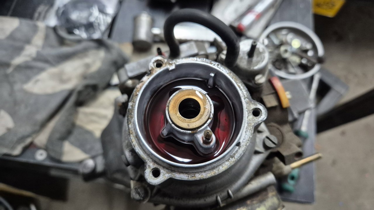 Teraz, jak już gaźnik jest we właściwej pozycji i się nie rusza, nalałem do środka ATFu.