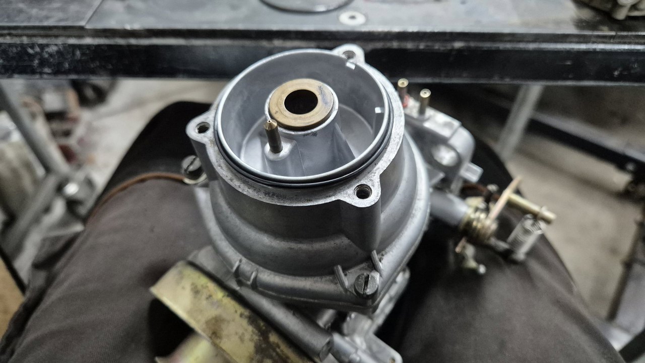 Potem włożyłem to do korpusu gaźnika i zamknąłem pokrywą. Na nią założyłem oring uszczelniający ,mniejszą pokrywkę.