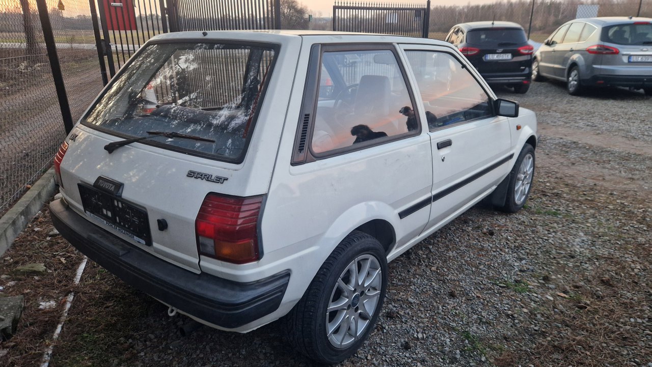 No i mam nowy samochód do opieki w garażu... Córka robi prawo jazdy i przebąkiwała coś o tym, że samochód by się jej przydał. Próbowałem szukać czegoś taniego i nowszego, ale córka mieszka w strefie czystego absurdu w Warszawie, więc wszystkim tam nie wjedzie. Na tyle nowy samochód, co może tam wjechać jeszcze przez jakiś czas, jest na tyle drogi i nudny, że rzygać się chce. Przerzucaliśmy się linkami do ogłoszeń z różnymi samochodami, ale każdy był dość drogi albo z dużym silnikiem, a wiecie jak to jest ze stawkami OC dla młodego kierowcy. Ten Starlet pojawił się dość wcześnie w dyskusji, ale go zignorowaliśmy. Po pewnym czasie jednak wróciłem do niego, bo córka stwierdziła, że jest milusi, a praktycznie ma kilka zalet:
