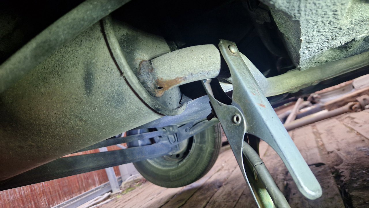 Oczywiście wymaga grubszego przeglądu, bo trochę stał, no i ma w końcu te 39 lat i sporo części jest jeszcze oryginalnych fabrycznych. Na początek zaspawałem dziurę w wydechu. Reszta wydechu jest prawie jak nowa.