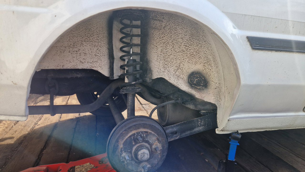 No i zaczynam normalny przegląd świeżo zakupionego samochodu, czyli zaglądam w hamulce i zawieszenie. Wygląda na to, że od wyjazdu z fabryki nikogo tu jeszzcze nie było. Zacznijmy od tyłu.
