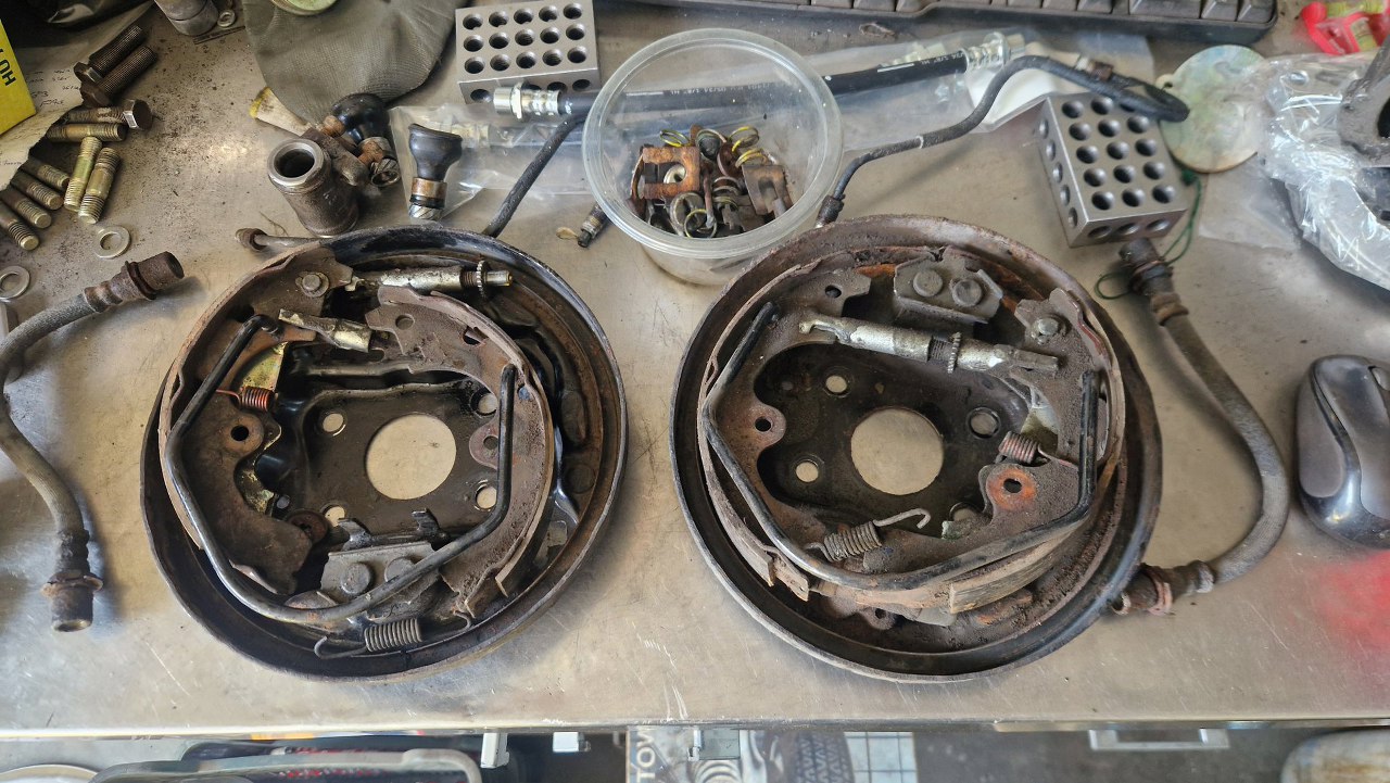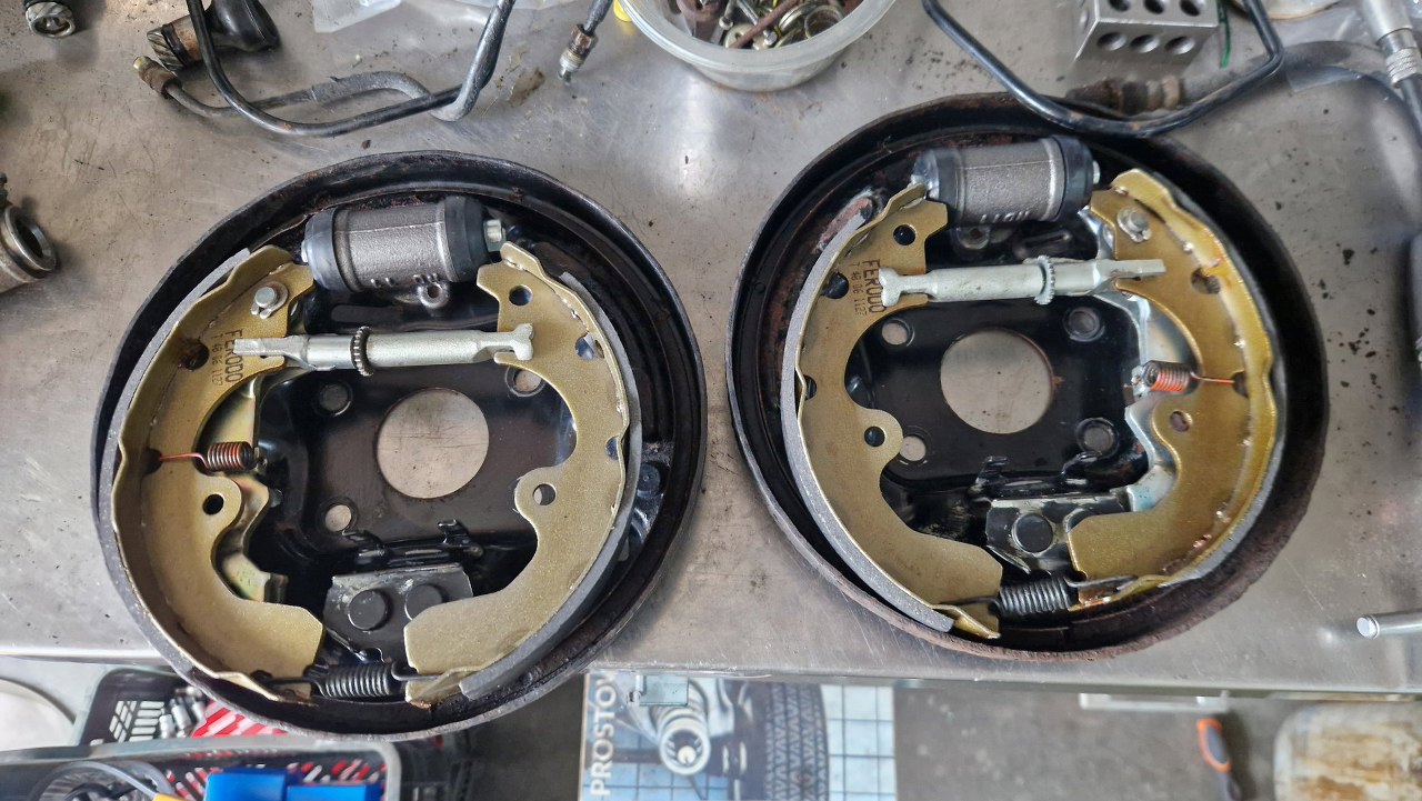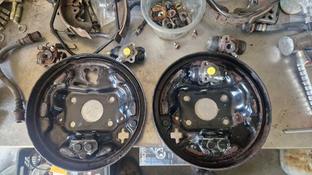 Doczyściłem tarcze kotwiczne ile się dało. Mam już nowe cylinderki, w tej konstrukcji są lewy i prawy.