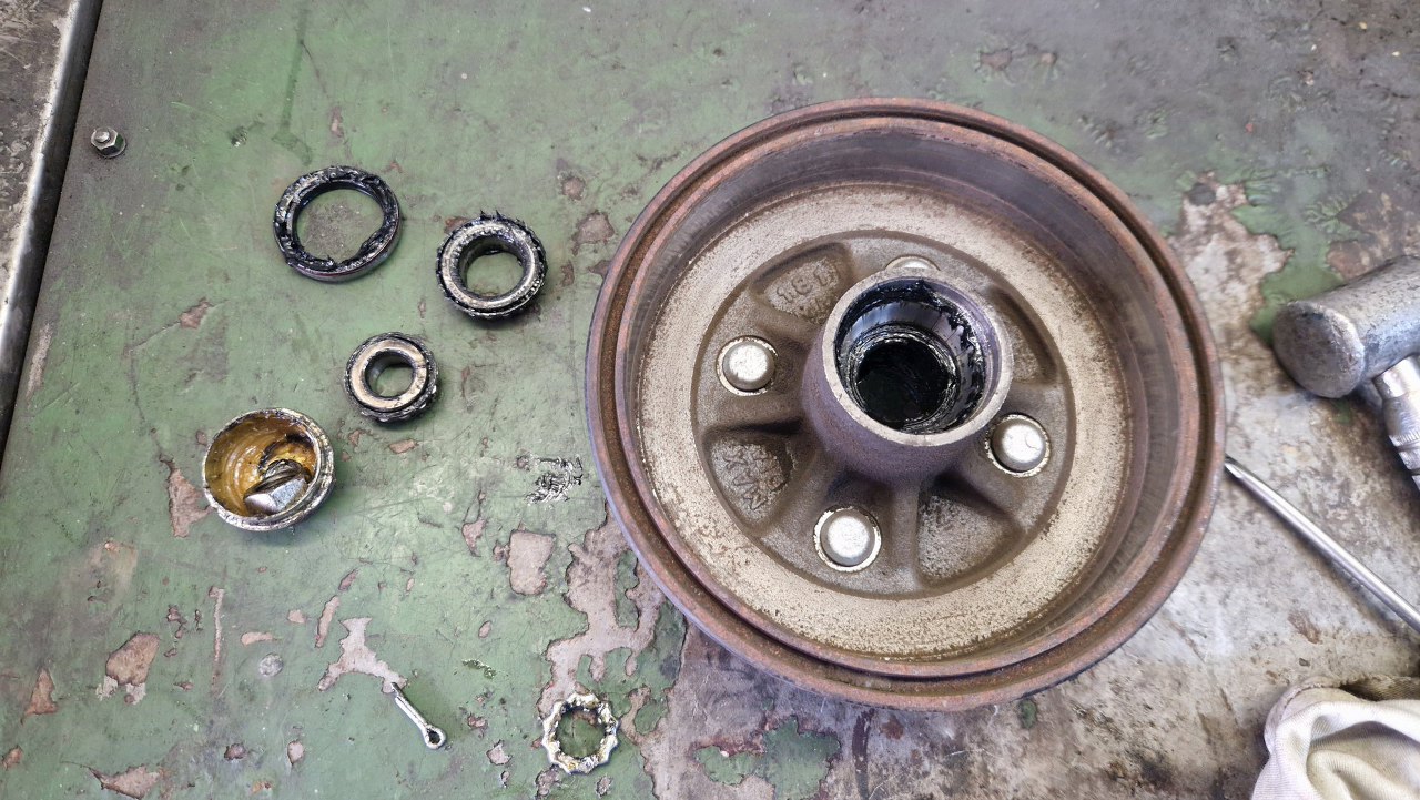 Po włożeniu łożysk zamontowałem też nowy uszczelniacz. Same bębny nie wymagają wymiany.