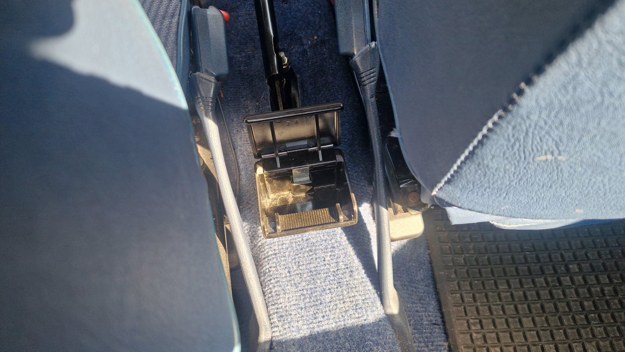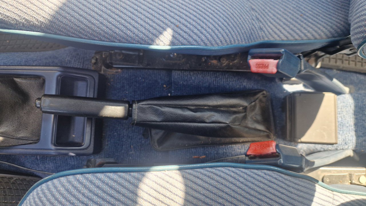 W ogóle jakie to jest proste wszystko. Jakoś lubię samochody bez konsoli środkowej. Oczywiście z tyłu, za dźwignią hamulca, musi być popielniczka dla pasażerów z tyłu, w końcu to lata 80-te i każdy pali jak smok.