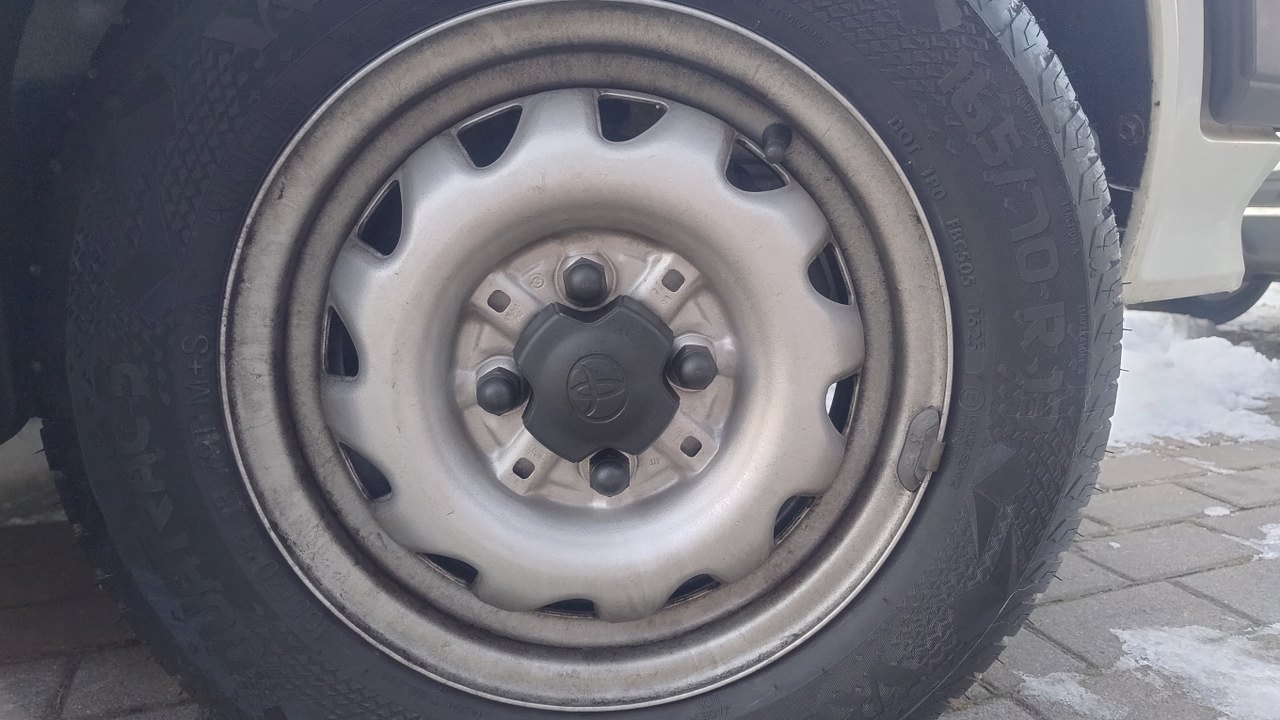 A tu już widać odnowione felgi, na nowych oponach, i z kołpaczkami.