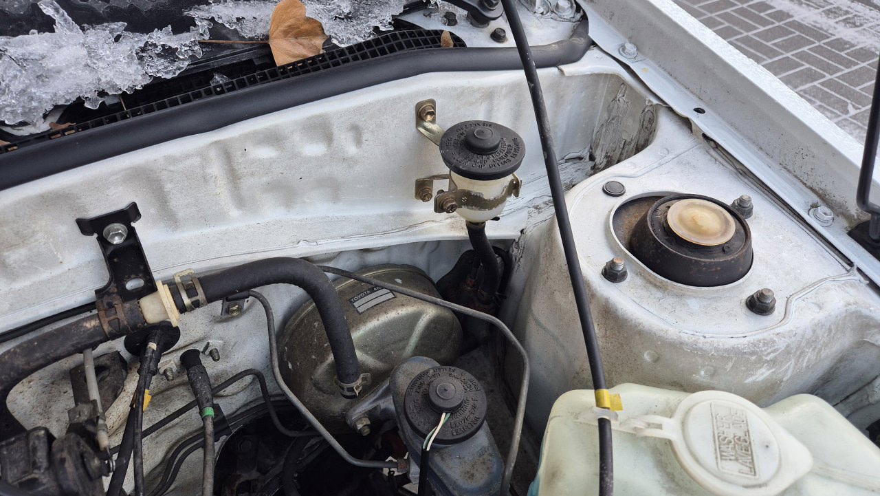 Potem córka zaczęła ujeżdżać autko na codzień. No i w najlepszą pogodę, przy -12 stopniach Celsjusza, padlo sprzęgło... Pod maską znalazłem pusty zbiorniczek.