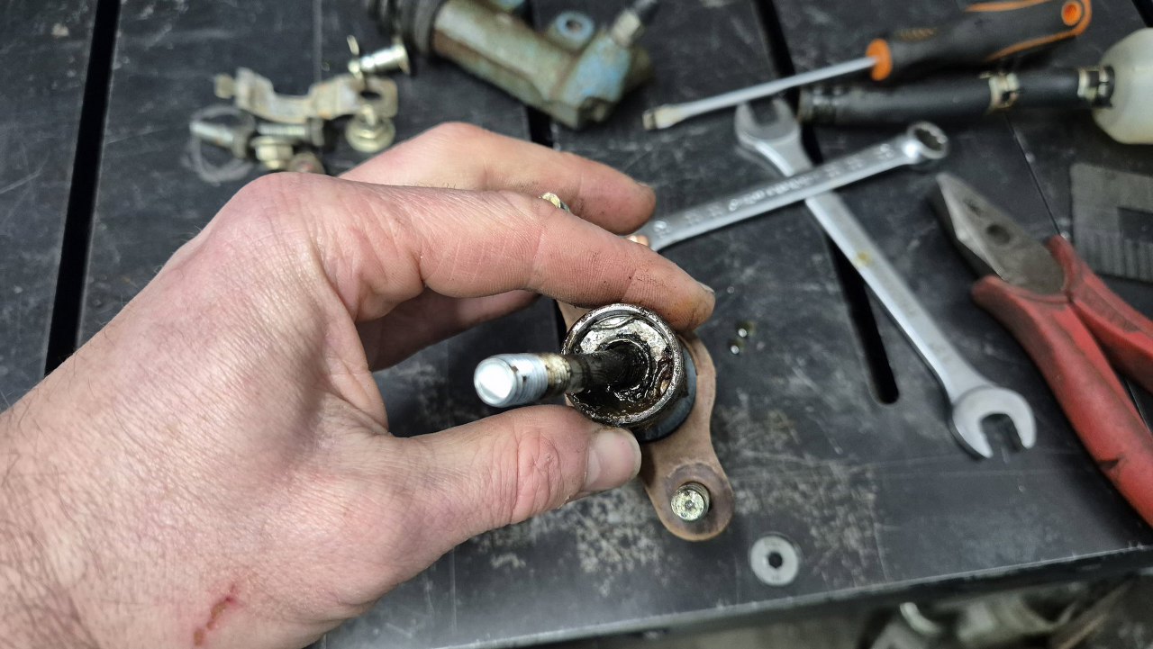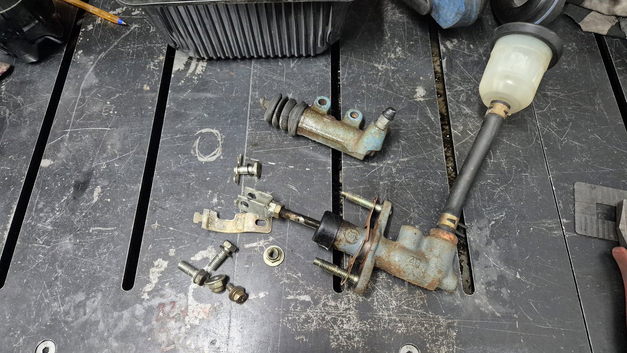 Wyciągnąłem wysprzęglik, ale i pompkę sprzęgła - mimo, że ją trochę mniej podejrzewałem o cieknięcie.