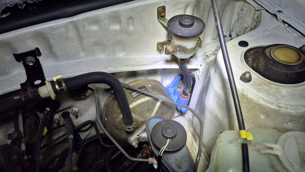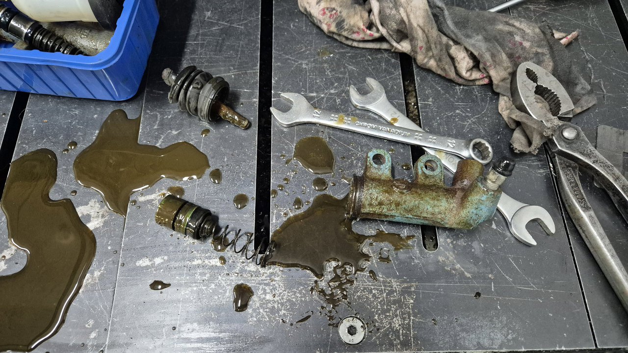 Po rozłożeniu pompki wylało się trochę płynu hamulcowego, całkiem nawet czystego.