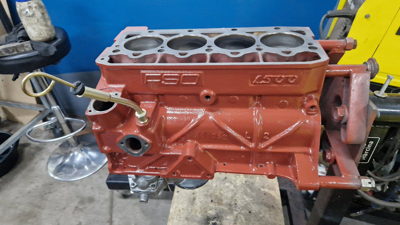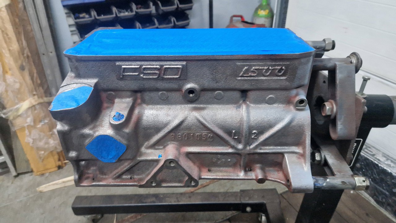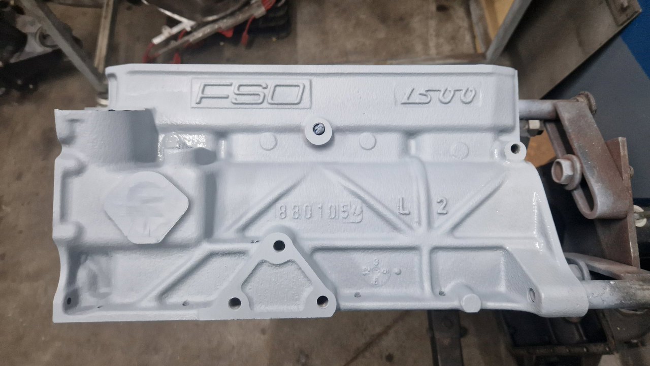 Pierwszą warstwą jest podkład epoksydowy. Zwróć uwagę na datę na odlewie, pośrodku bloku. 5 stycznia 1988.