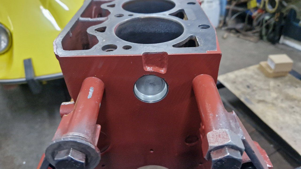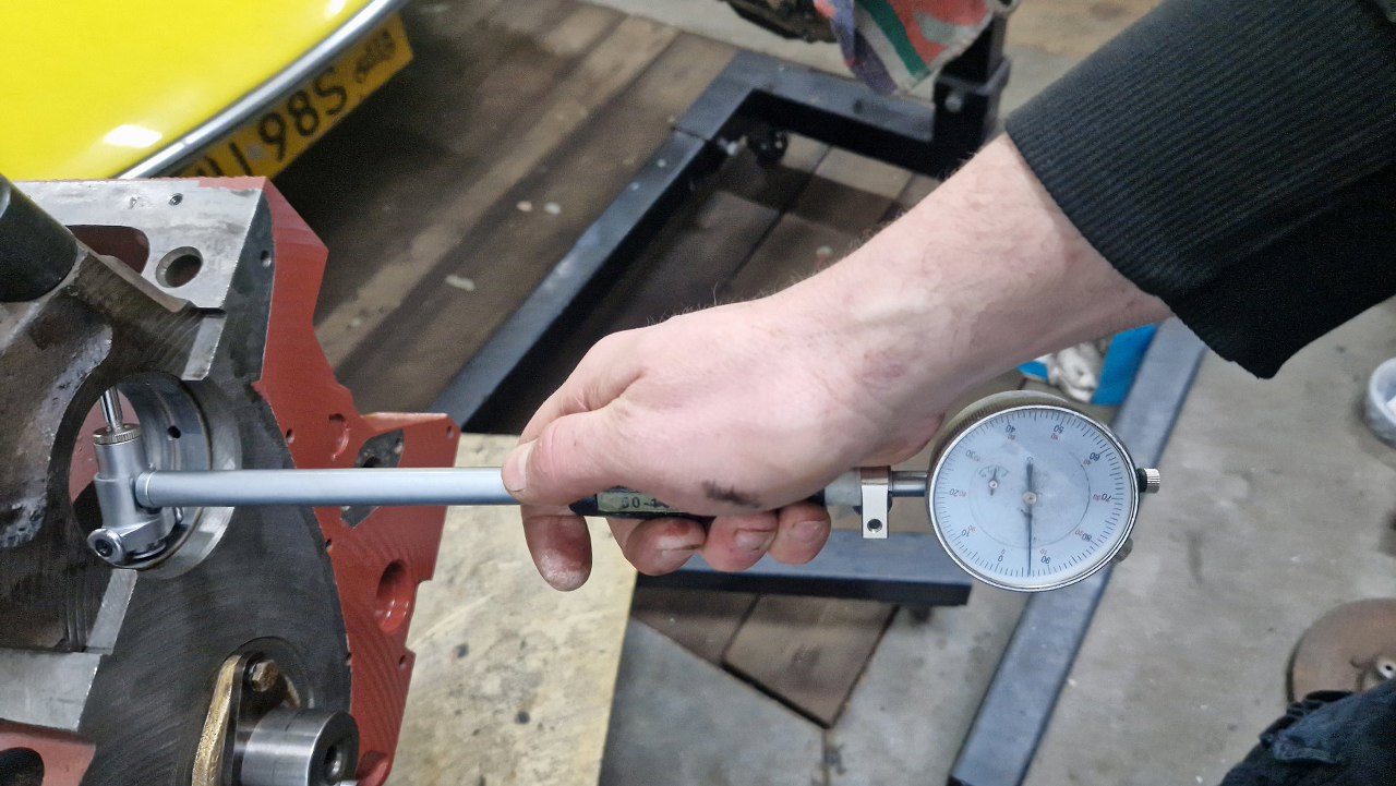 Mimo to spróbowałem pomierzyć ich wymiar wewnętrzny, bo coś mi nie pasowało. Okazało się, że te panewki były za małe o 0,07mm każda. Wyrwalem je więc z bloku.