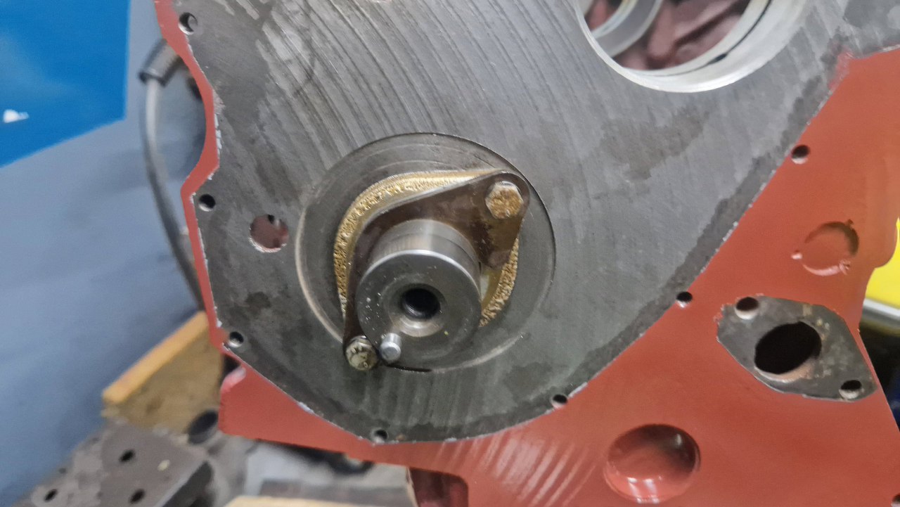 Przykręciłem przednią panewkę i płytkę mocującą wałek w bloku.