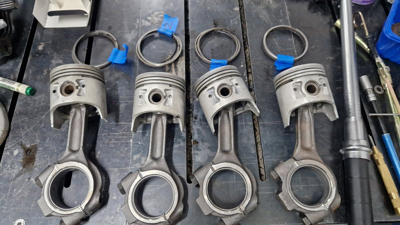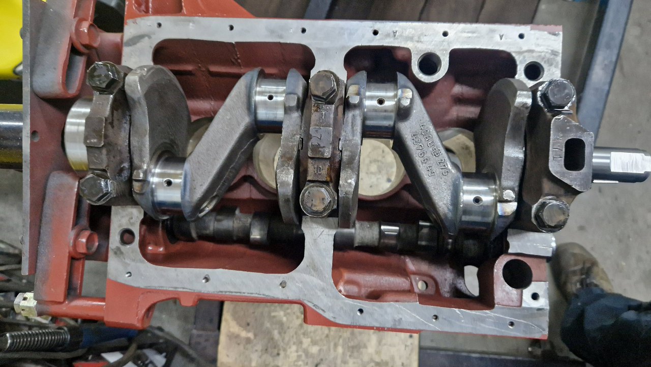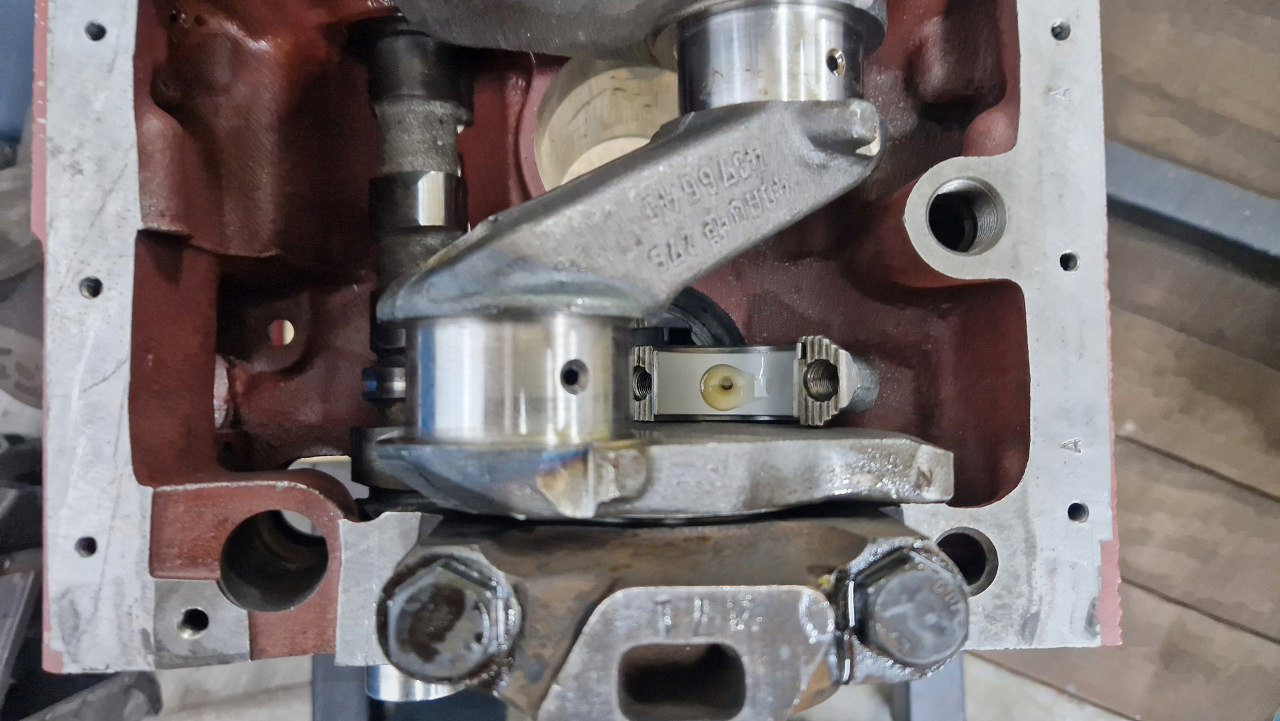 Niedługo potem miałem już wszystkie cztery tłoki wsunięte do bloku i skręcone z wałem.